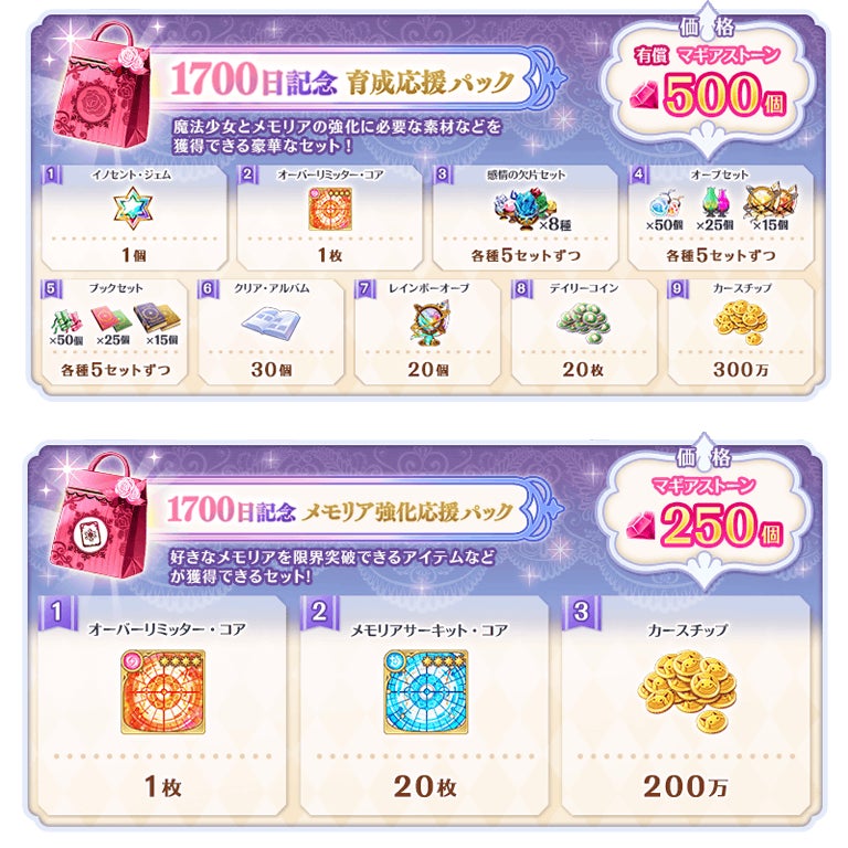 ※「1700日記念 メモリア強化応援パック」のご購入はおひとり様2回までです。