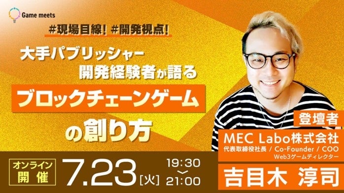 【ブロックチェーンゲーム】大手パブリッシャーでの開発経験者が現場目線、開発視点で語る!7/23(火)無料セミナー「ブロックチェーンゲームの創り方【Game meets】#38」開催