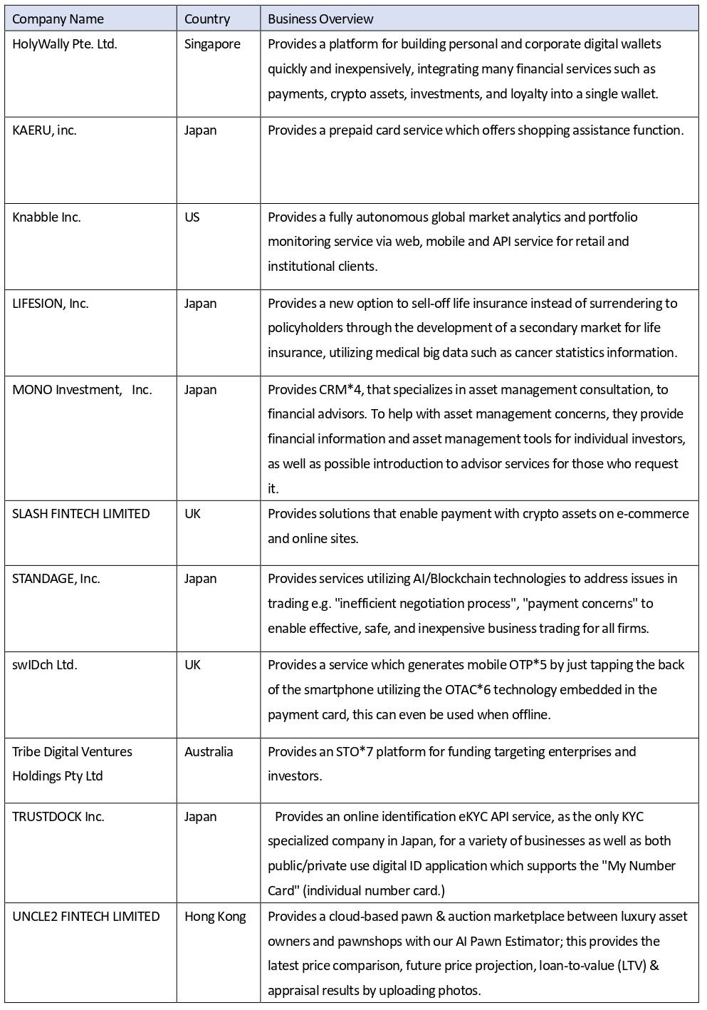 TMG has accepted applications for the “Financial Innovation Category”, one of the categories that make up the award, from financial companies that offer proposals which answer financial service needs and issues from May 31st. TMG has accepted applications from 108 companies, from Japan and 25 other countries and regions. TMG is proud to announce that they have selected 15 domestic and foreign companies which have passed the first round of screening and are eligible to enter the support program.