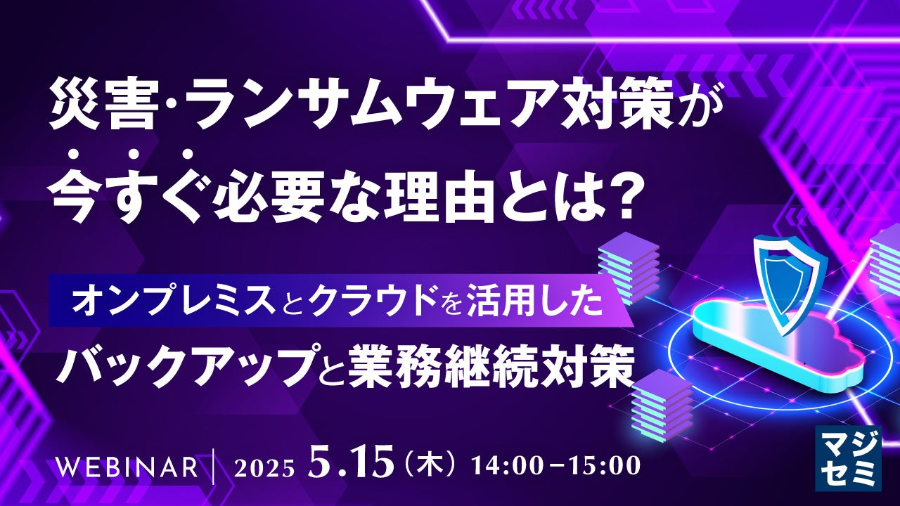 マジセミ株式会社は「災害・ランサムウェア対策が今すぐ必要な理由とは?」というテーマのウェビナーを開催します。