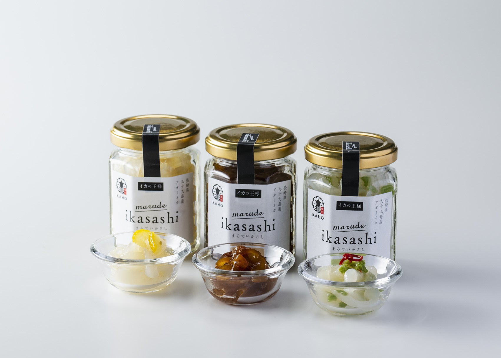 ゆず味は、アオリイカの甘みと爽やかなゆずの香り、そしてピリッと効いたゆず胡椒の風味が絶妙なハーモニーを奏でます。そのほか、しょうゆ・わさび味もございます。