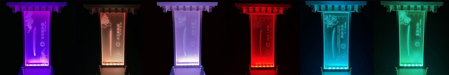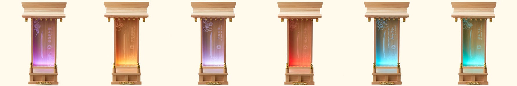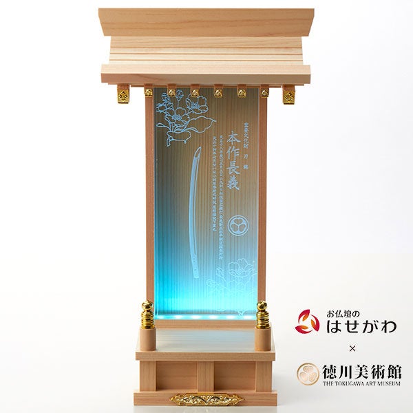 徳川美術館に所蔵される人気刀剣6振り(鯰尾藤四郎・後藤藤四郎・物吉貞宗・南泉一文字・本作長義・五月雨郷)を通称『とくびぐみ』のオリジナルプレートが付属したオリジナル仕様の「推し壇」です。お仏壇のはせがわが販売する通常の「推し壇」よりコンパクト(幅200×高さ350×奥行110mm)にすることで、お部屋に置きやすいサイズにいたしました。
