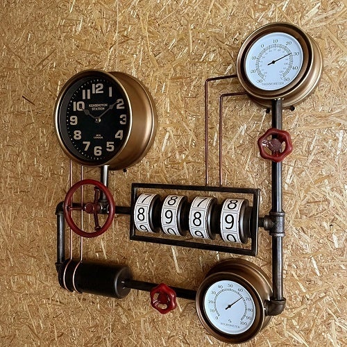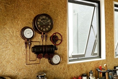 歯車のモチーフや蒸気メーターをイメージした温度計がより雰囲気を醸し出します。