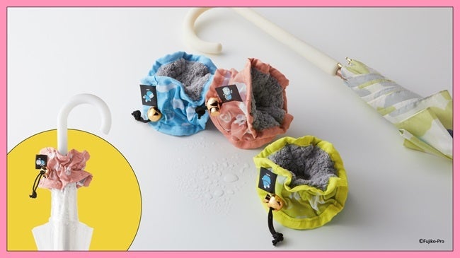 傘に通してくるくる回すだけで、ぬれた傘の水滴を吸水してくれる専用のシュシュです。雨の日、傘の水滴で周囲や自分の服をぬらしたくないときなどに活躍します。雲や鈴がプリントされた『ドラえもん』仕様のデザインは〈ブルー〉〈ピンク〉〈ピスタチオイエロー〉の3種類。自分の傘の目印にもなる、雨の日の頼れる相棒です。
