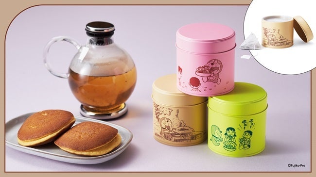 まんがの中から食べ物が登場するおはなしをピックアップし、それぞれをイメージして作られたフレーバーティーです。〈お花見煎茶ブレンド〉〈ほっとひと息ほうじ茶〉〈トロピカルな味わいフルーツティー〉の3種類で、お茶の香りと一緒に作品の世界を楽しむことができます。各缶にティーバッグが20個入っていて、使い終わったらペン立てや小物入れとしても使えます。