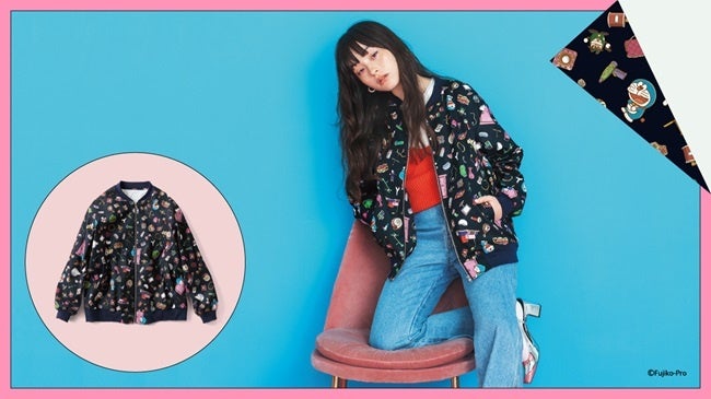 たくさんのひみつ道具にドラえもん、ドラミちゃんの姿も散りばめられた楽しい総柄プリントのブルゾン。ほどよく薄手でマットな光沢感のある生地は、はおるだけで存在感も抜群です。ブラックがベースの、ほんのりモードな雰囲気は、コーデ次第でクールにもキュートにも着こなせます。ゆとりのあるシルエットは、少し厚手のものも合わせられるので、秋まで活躍してくれること間違いなしです。