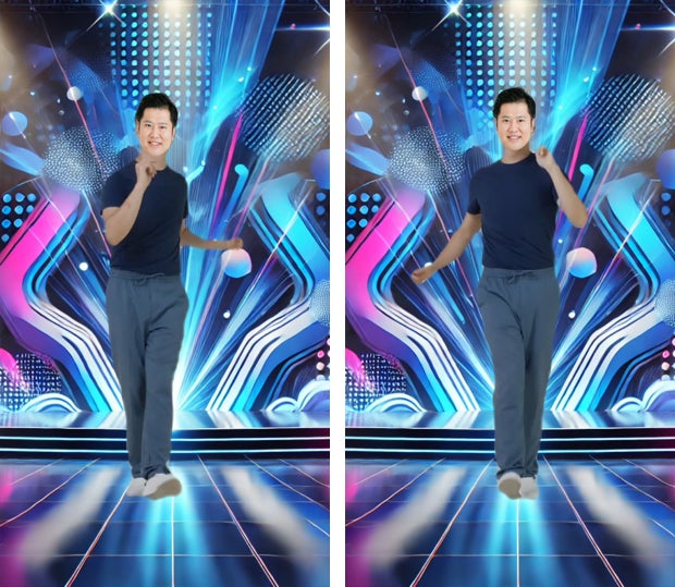 第1弾では、とにかく明るい安村の全身デザインで、どなたでも簡単に全裸ポーズで撮影ができるようになっておりましたが、第2弾ではデザインを一掃し安村の顔とステージ風の背景をまとったTikTok動画の撮影ができるようになっております。