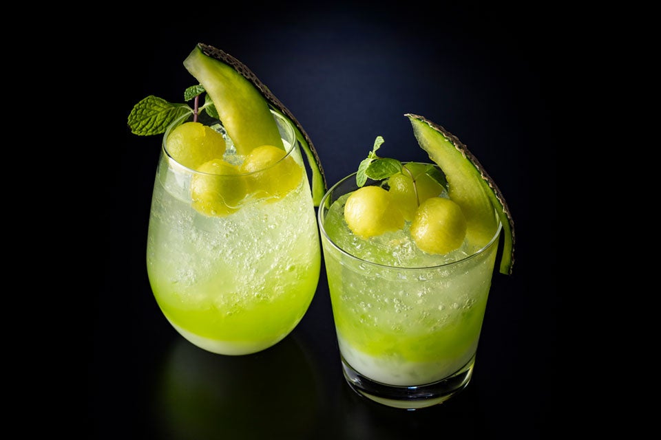 BAR&LOUNGE「MIDO(ミドウ)」では、果肉感たっぷりのメロンを味わう「メロン・ドロップス」、初夏の夕日をイメージした「バーミリオン」の2種類のシーズナルドリンクを、カクテル・モクテルそれぞれでご用意いたします。また、春に続きご好評いただいた「季節のデザート&シーズナルカクテルのSpecialデザートセット」も、初夏仕様で登場。メロンのショートケーキにメロンソルベ、メロンマカロンを添えた「メロンパフェ2025」を、「メロン・ドロップス」とともにお楽しみいただけます。