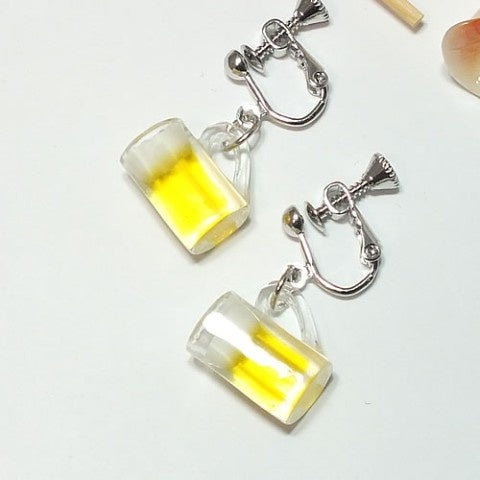 小さくて軽い、リアルなミニチュア生ビールのピアスです。