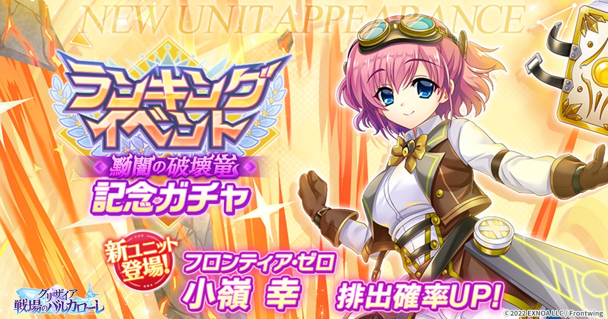 『グリザイア 戦場のバルカローレ』ランキングイベント「黝闇の破壊竜」開催! 新ユニット「フロンティア・ゼロ 小嶺 幸」ピックアップガチャも登場!