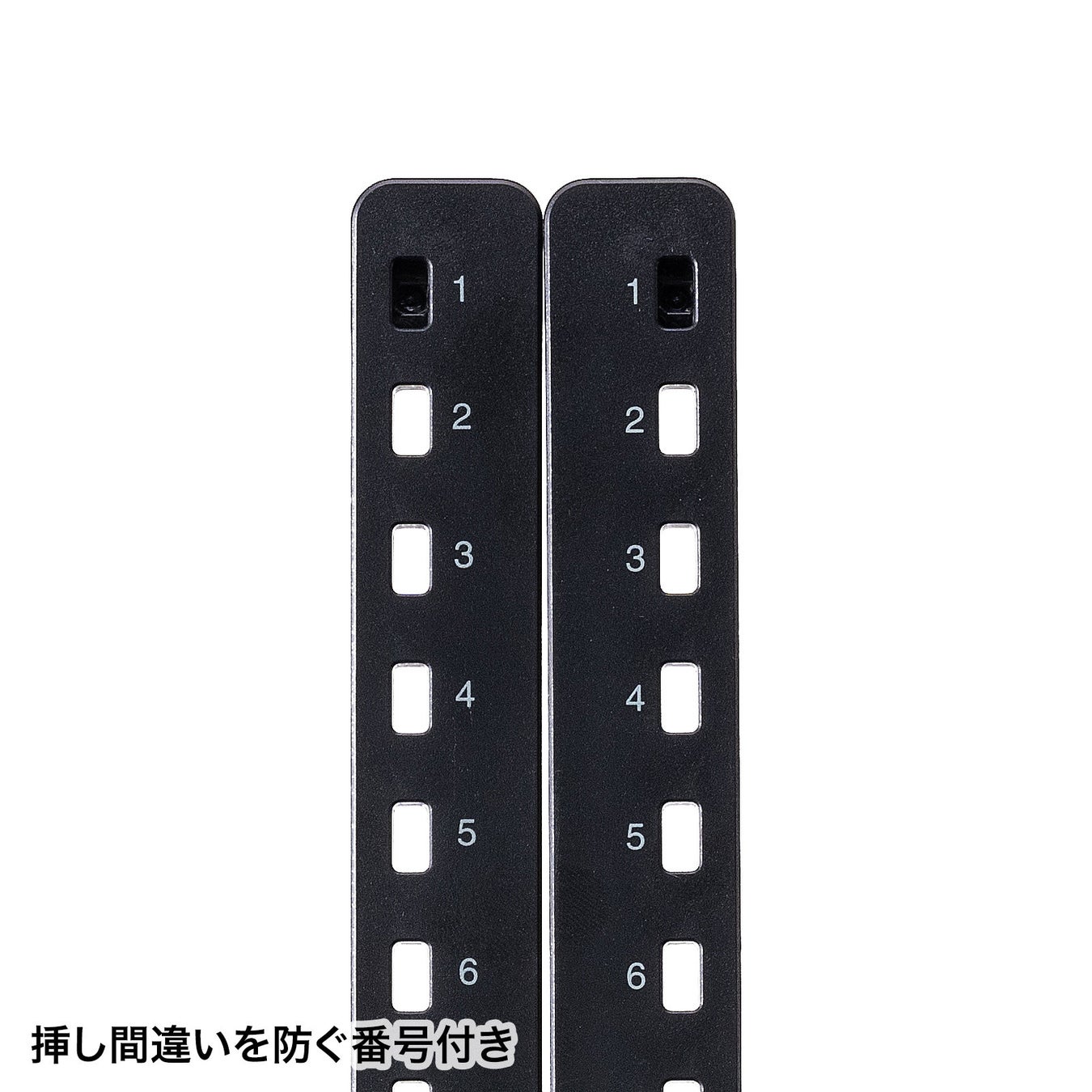 スタンドの2本の足部分には対になる番号が振られており、角度微調節の際にも挿し間違いを防ぎます。
