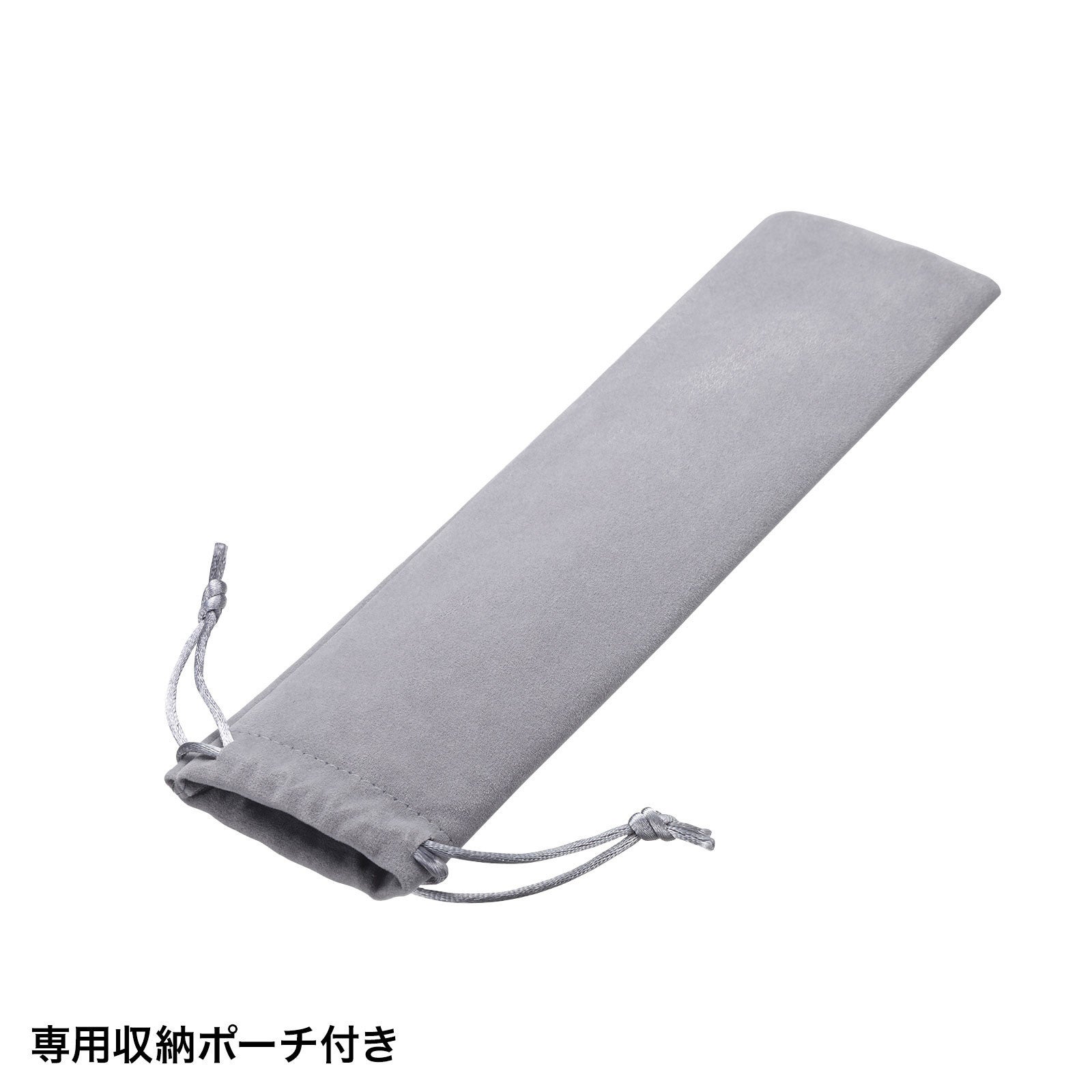 また、折りたたんでコンパクトにできるので、カバンに入れて持ち運んだり、デスクの引き出しに収納したりするのに便利です。専用収納ポーチ付きなので、フックに引っ掛けて保管することもできます。