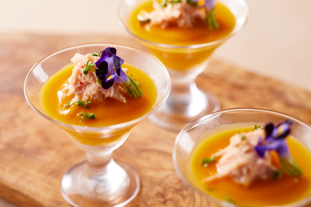 バターナッツスクワッシュのブランマンジェ カニサラダ添え