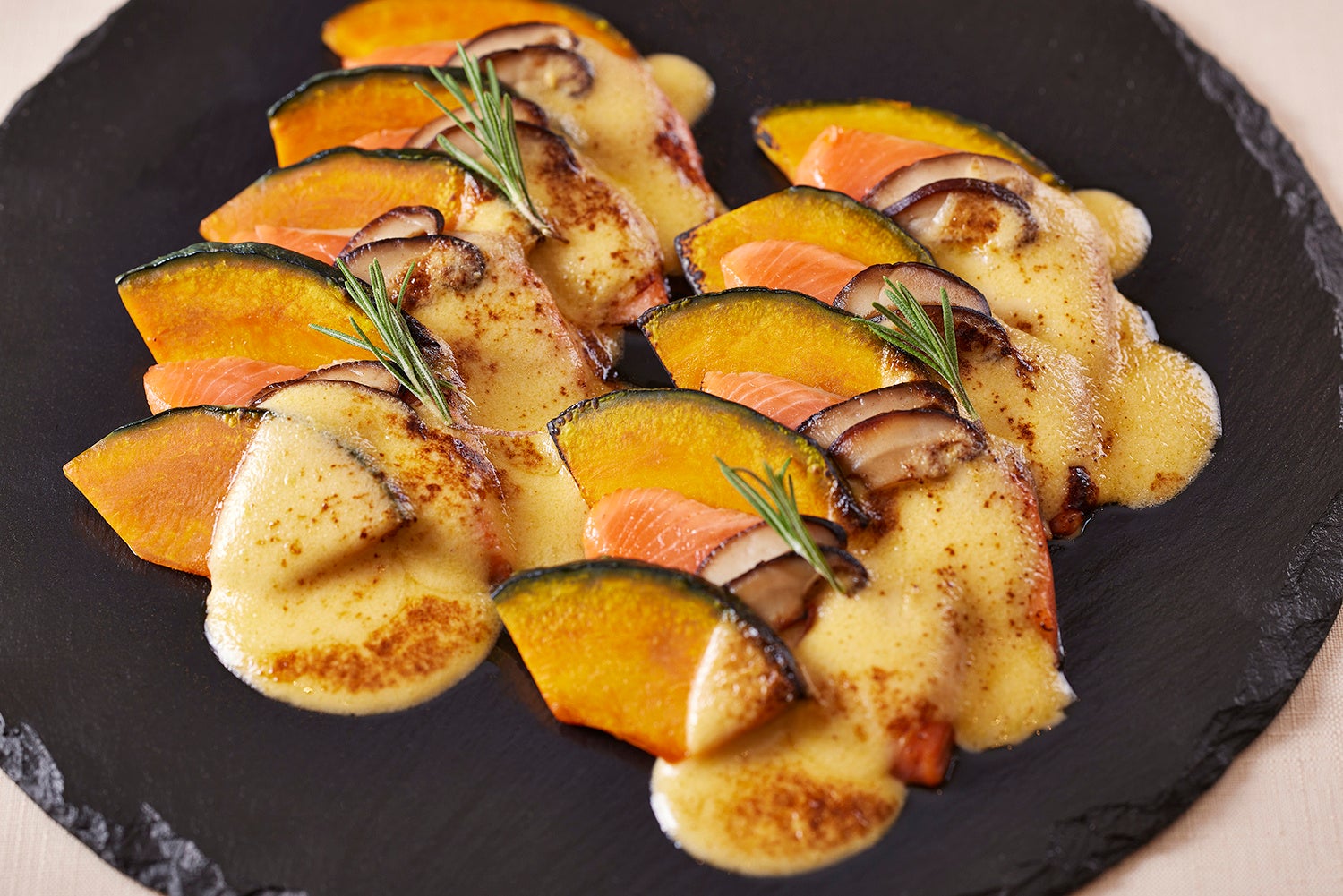 サーモンとかぼちゃのボム・ファム仕立て