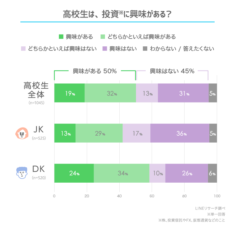 このたびLINEリサーチでは、日本全国の高校生を対象に、貯金をしている人の割合や、投資に興味がある人の割合などについて調査しましたので、その結果をお知らせいたします。