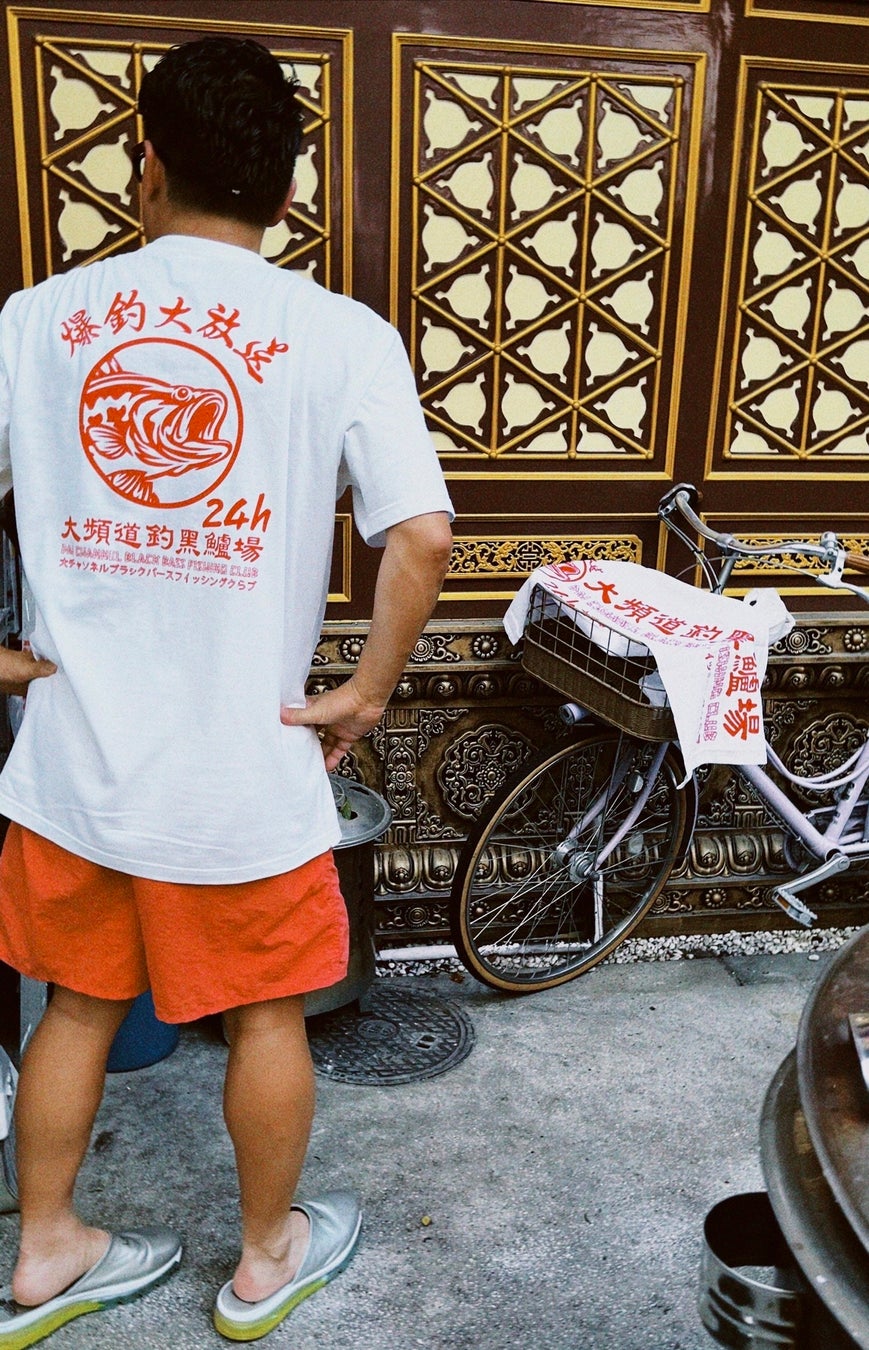 普段はオンラインのみで販売しているアイテムを、特別に店頭にて販売いたします。今回は、名古屋のハンバーガー&アートグッズショップ「KAKUOZAN LARDER」のN.I.W.A.氏と共同で制作した「爆釣大放送」Tシャツやフェイスタオル、ステッカーなど計4種類を販売予定です。