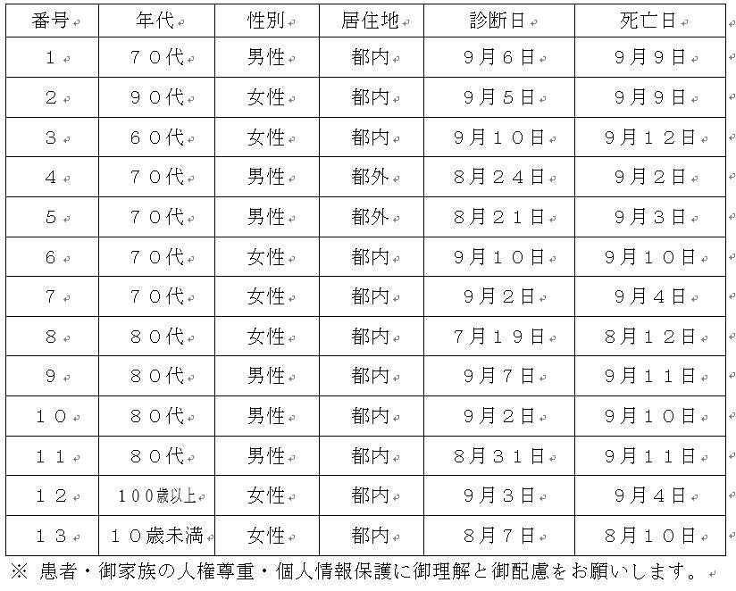 都内で新型コロナウイルスに感染した方が死亡されましたのでお知らせします。
