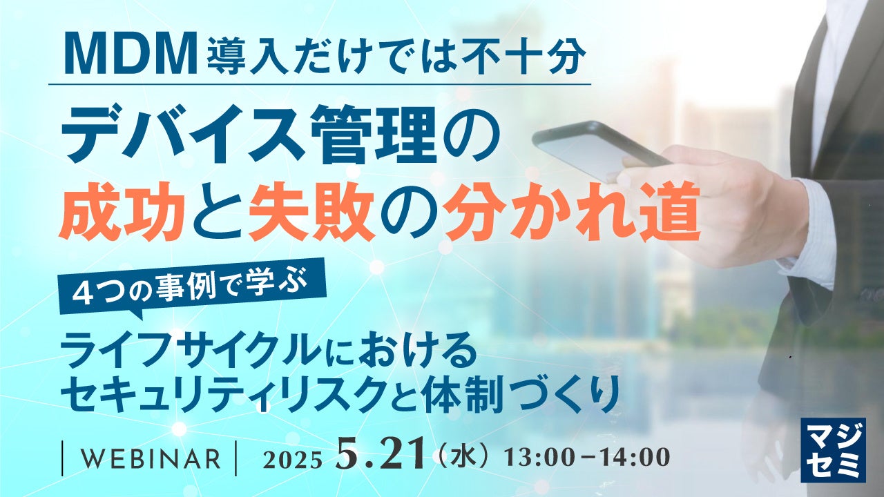 マジセミ株式会社は「MDM導入だけでは不十分、デバイス管理の成功と失敗の分かれ道」というテーマのウェビナーを開催します。
