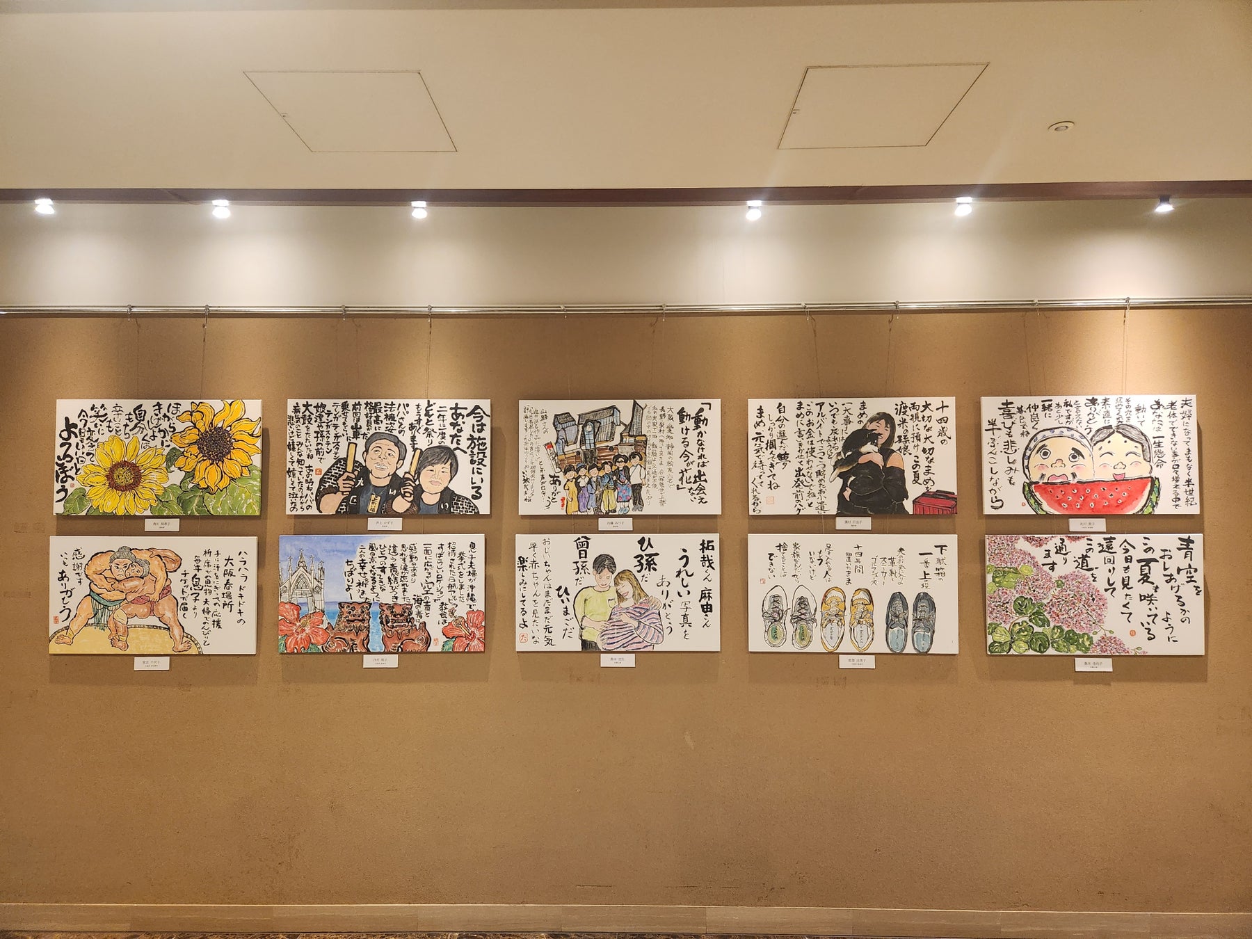 2022年2月よりホテル2階の通路スペースをギャラリーとして活用した展示は、地域の方のご協力を得て12回目を迎えます。なかでも、タオル筆による作品展示は毎年実施しており、地場産業である泉州タオルの発展や「全国タオル筆で描く絵てがみコンクール」を、空港内に立地するホテルという特徴を生かして国内外の方に知っていただく機会を創出すべく継続しております。