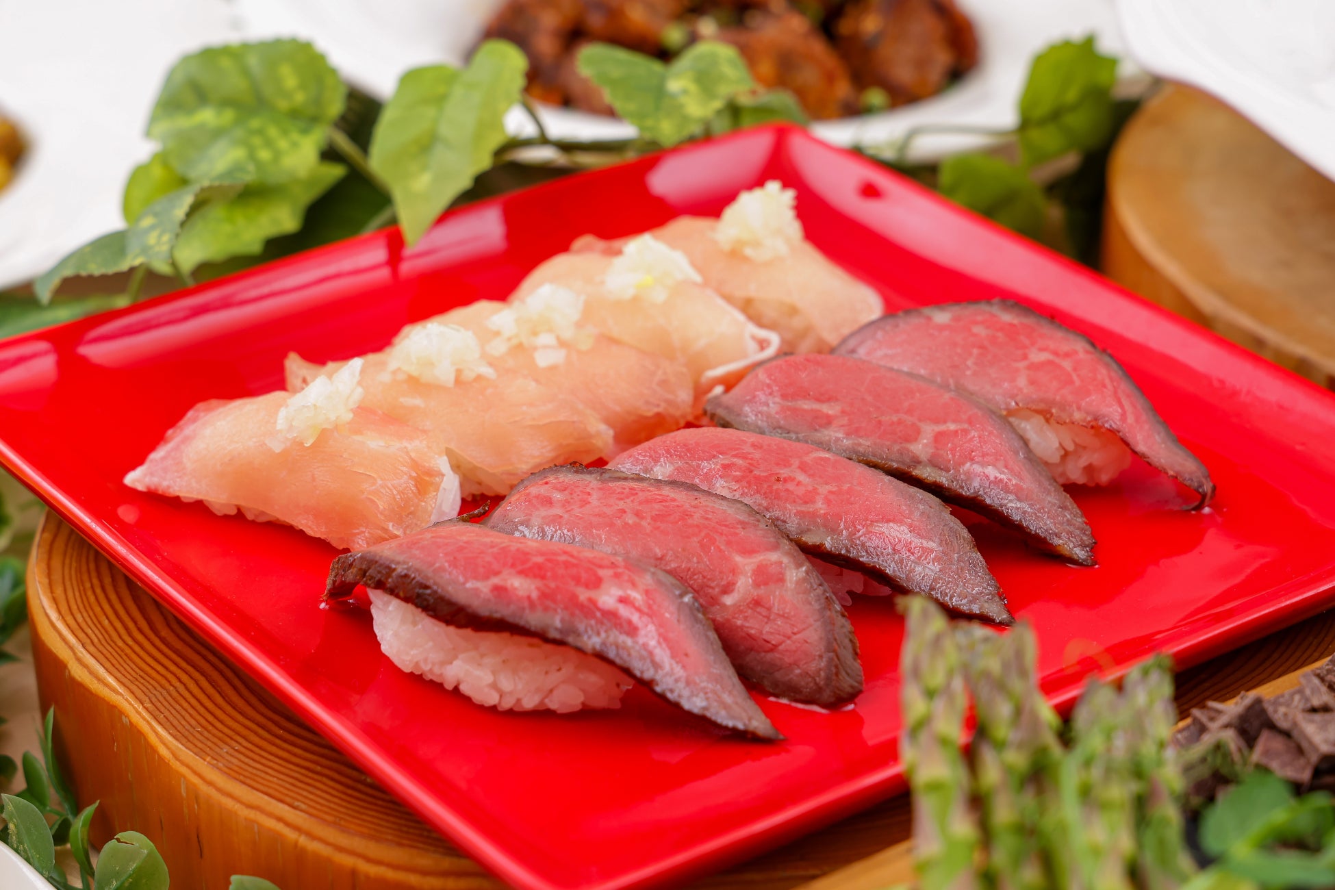 お寿司(ローストビーフの握り・生ハム・鮪・トラウトサーモン・海老)