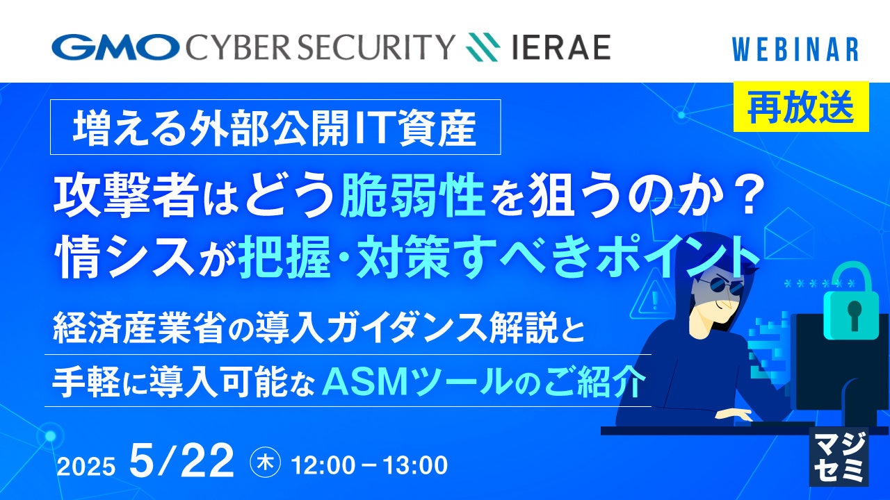マジセミ株式会社は、大変好評をいただいた「【再放送】増える外部公開IT資産、攻撃者はどう脆弱性を狙うのか? 情シスが把握・対策すべきポイント」というテーマのウェビナーを再放送します。