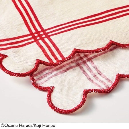 かごの目隠しやお弁当包みに使っても◎。大きめのスカラップに刺しゅうがアクセントになっています。大判サイズなので、使い方の幅も広がります。