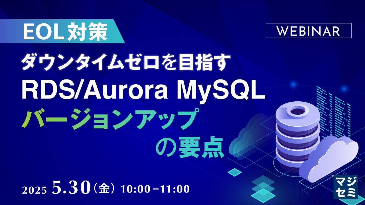 マジセミ株式会社は「【EOL対策】ダウンタイムゼロを目指す RDS/Aurora MySQL バージョンアップの要点」というテーマのウェビナーを開催します。
