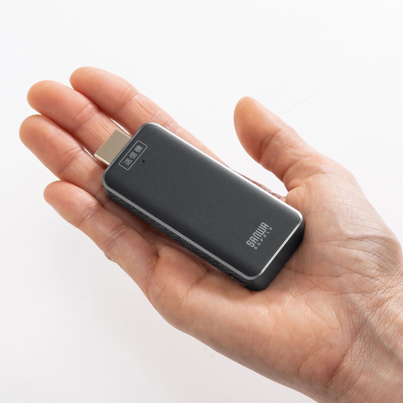 本体は手のひらに収まるコンパクトサイズで、持ち運びにも便利です。日本国内で使用するための技術基準適合証明(TELEC認証)取得済みです。