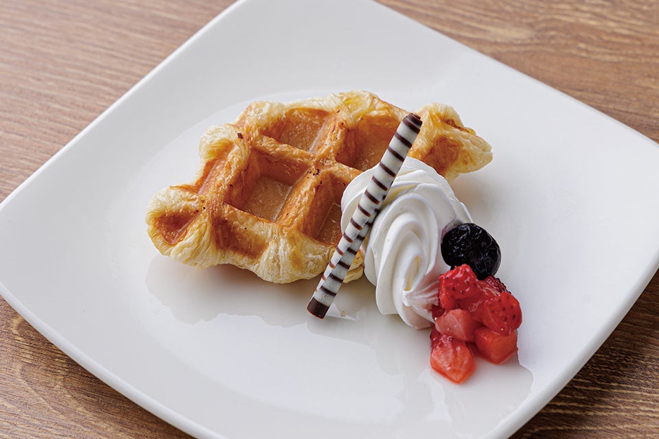 ご予約特典として、ご利用前日17時までに予約されたお客さまを対象に「焼きたてクロッフル(クロワッサンワッフル)」を提供します。ベルギーのデザートとして有名なワッフルをクロワッサンを使ってアレンジしました。