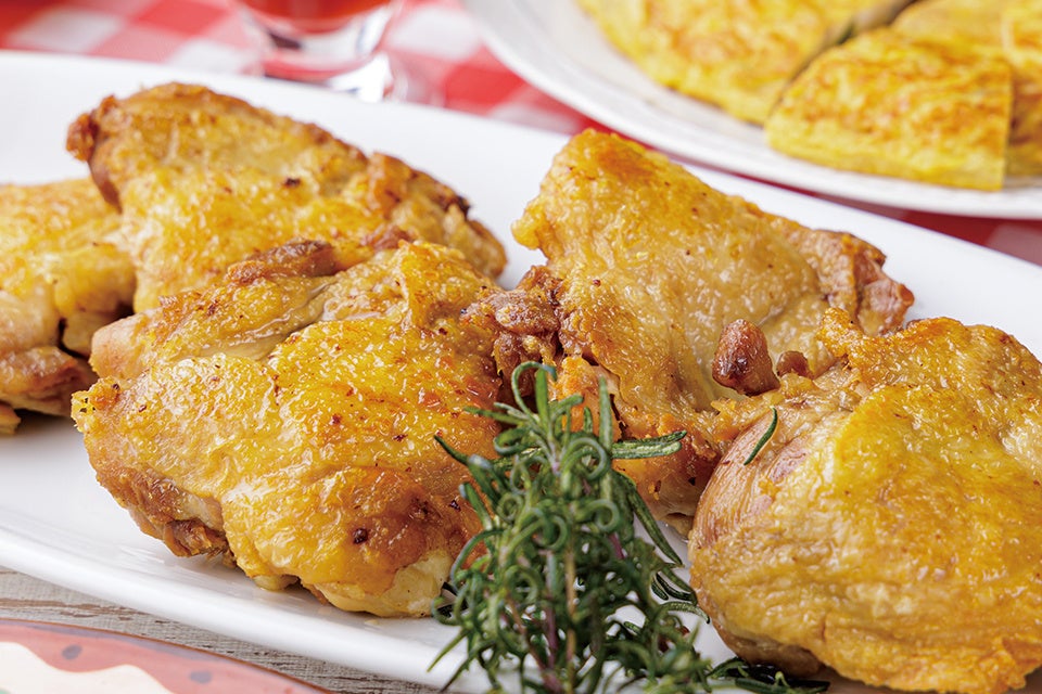 フランスからは「低温の油でじっくりと煮る」という伝統的な調理法を用いた「ローズマリー香るチキンのコンフィ」。鶏もも肉とローズマリーを80℃のラードの中でじっくり90分以上煮込むことにより旨味や香りを引き立てます。