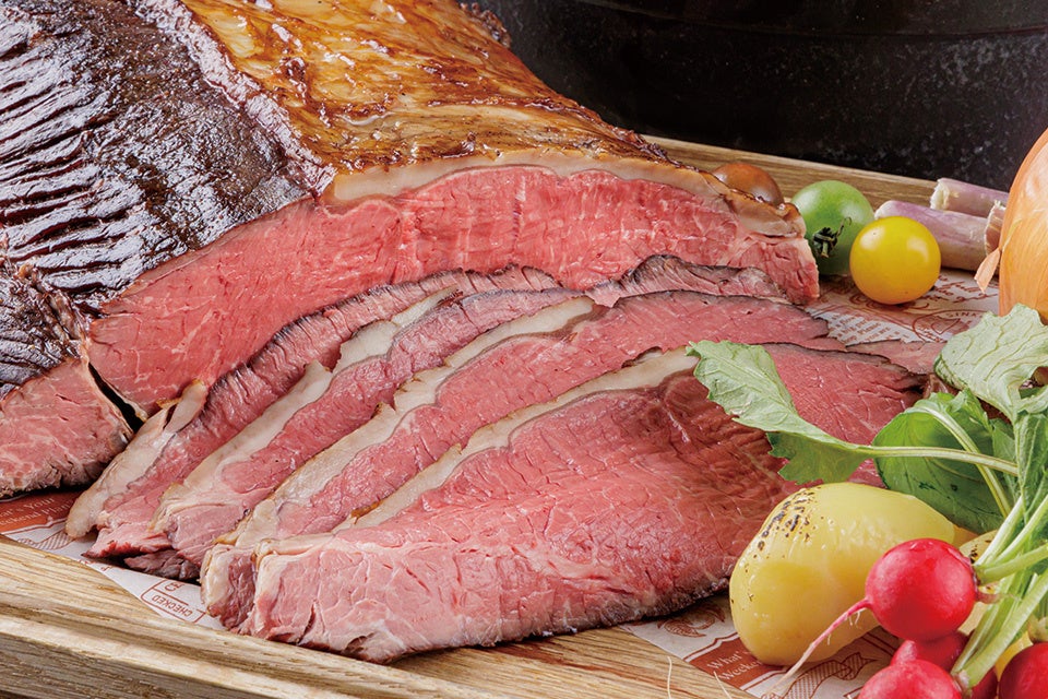 イギリスからは「ローストビーフ グレイビーソース」。牛ロース肉約4kgの塊肉を塩・胡椒・オリーブオイルで一晩マリネし、低温でじっくり火を入れることでしっとりと柔らかな食感に仕上げました。肉の旨味を凝縮したグレービーソースでお召し上がりいただきます。
