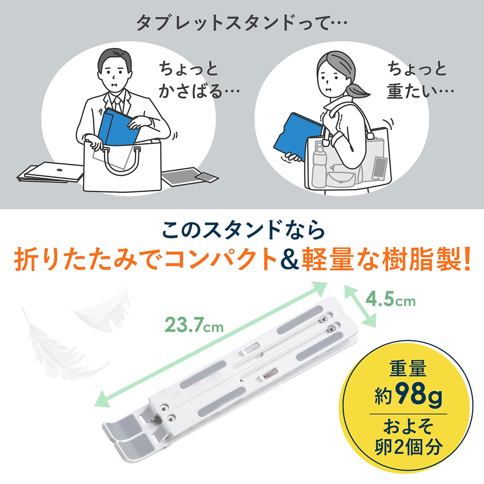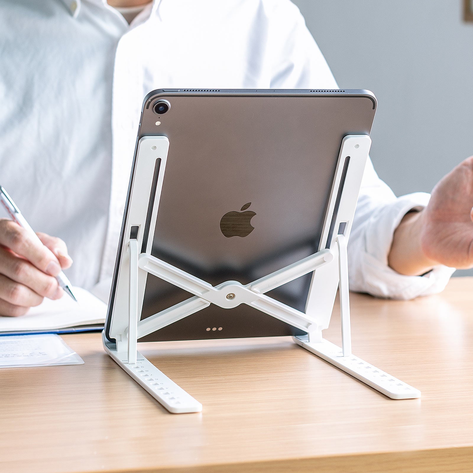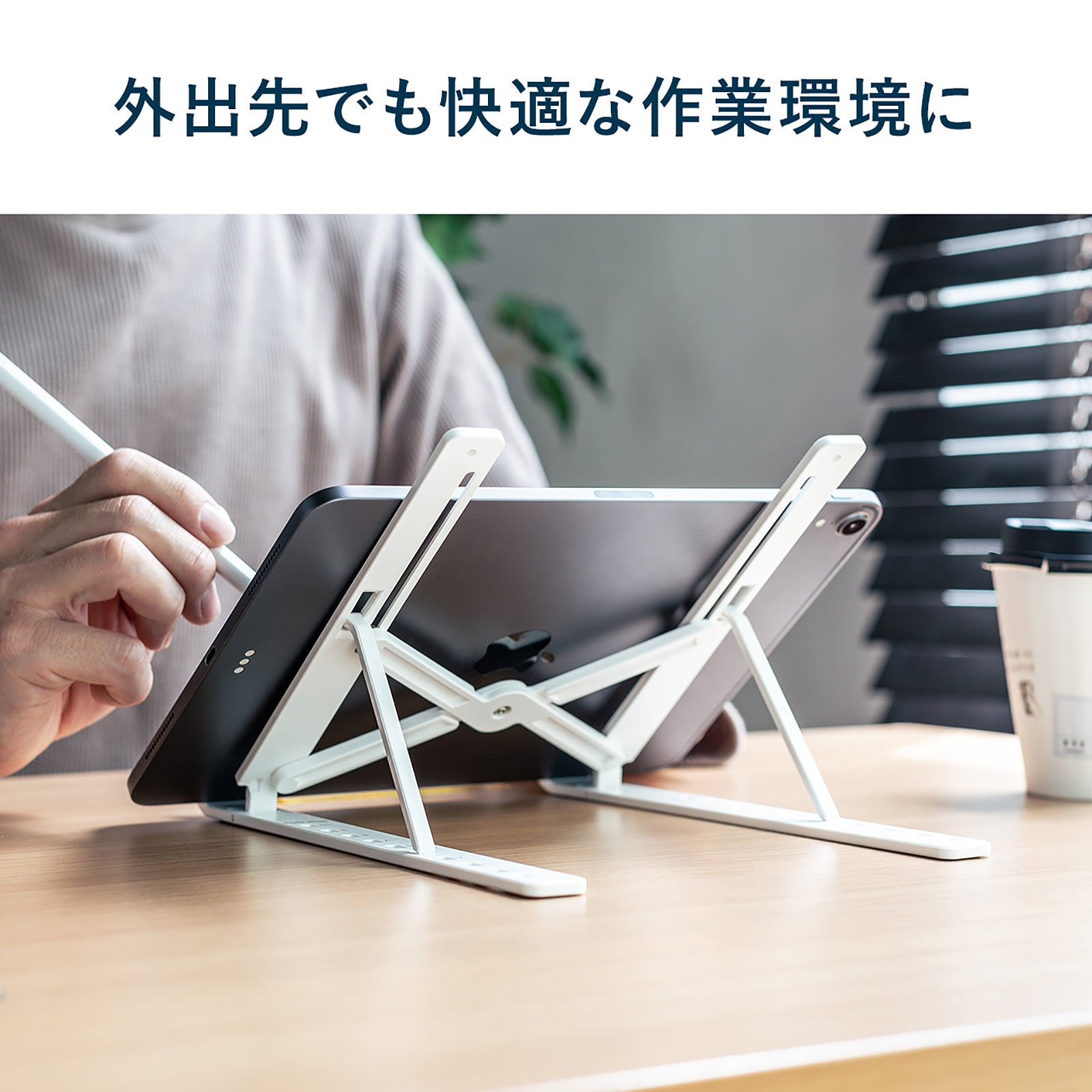 iPad タブレットスタンド 持ち運び 折りたたみ 10段階 角度調整 斜め 樹脂素材 軽い 姿勢改善 手書き イラスト 勉強 iPad Pro Air mini