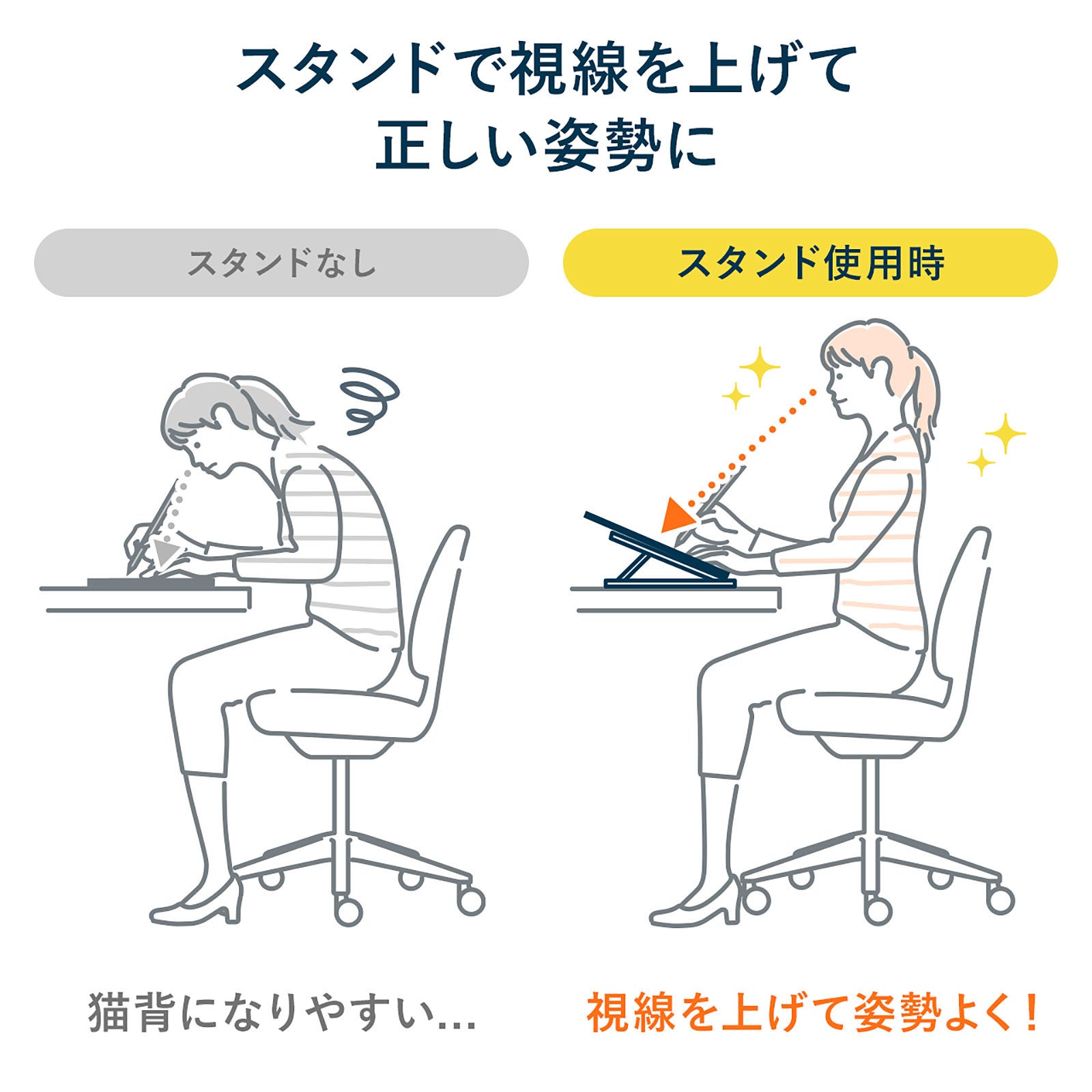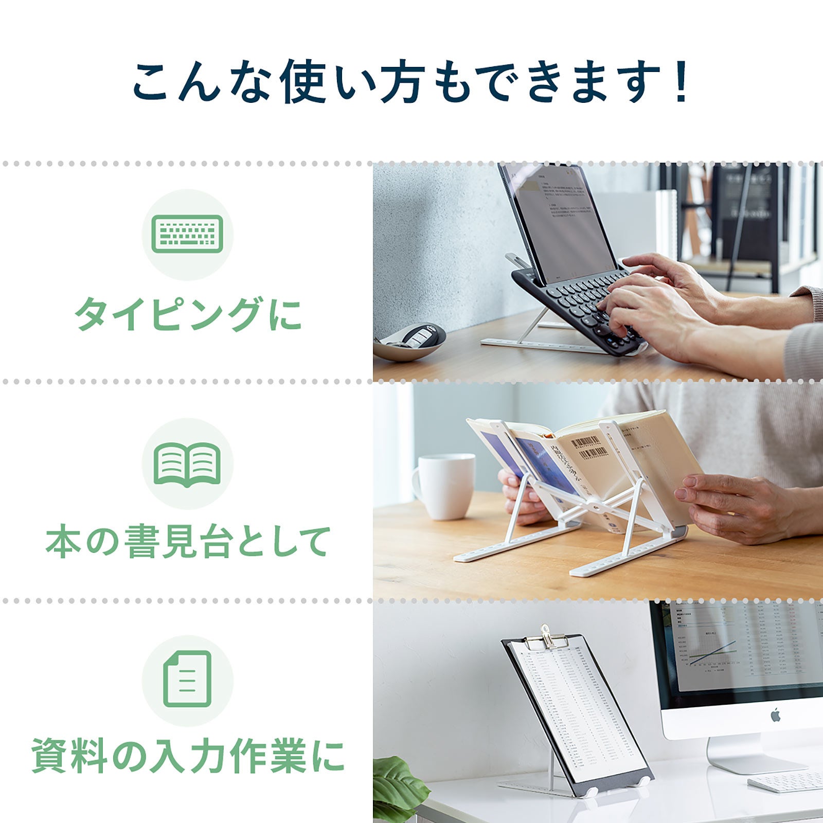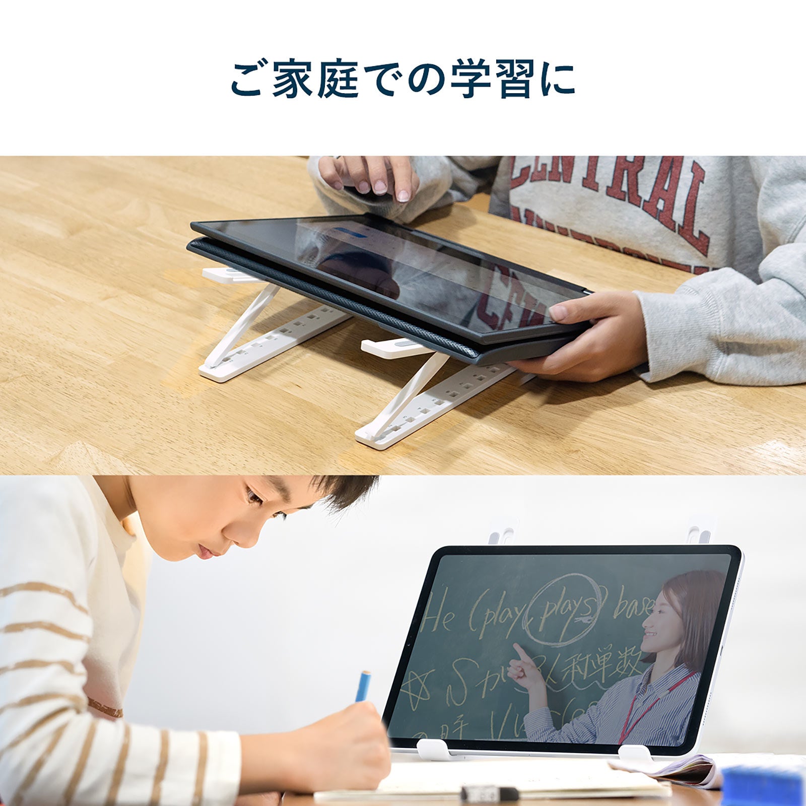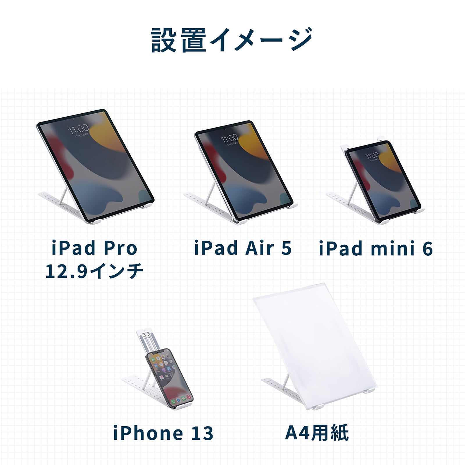 iPad タブレットスタンド 持ち運び 折りたたみ 10段階 角度調整 斜め 樹脂素材 軽い 姿勢改善 手書き イラスト 勉強 iPad Pro Air mini