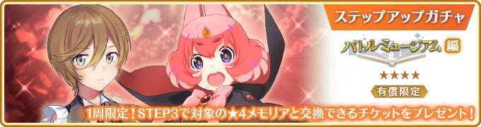 ※『有償限定 ステップアップガチャ バトルミュージアム編』の★4魔法少女確定までのカウントは同時開催の『藍家ひめな ピックアップガチャ』『有償限定 ステップアップガチャ 藍家ひめな編』とは異なります。