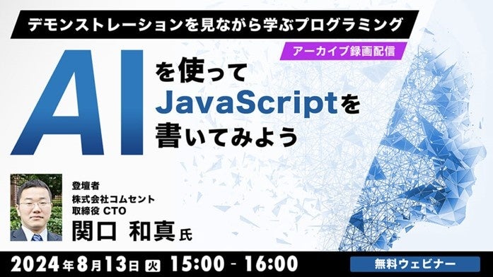 【プログラマー向け】生成AIを使ったJSのプログラミングについてデモを見ながら学ぶ!8/13(火)好評セミナー「AIを使ってJavaScriptを書いてみよう」のアーカイブ映像を無料配信