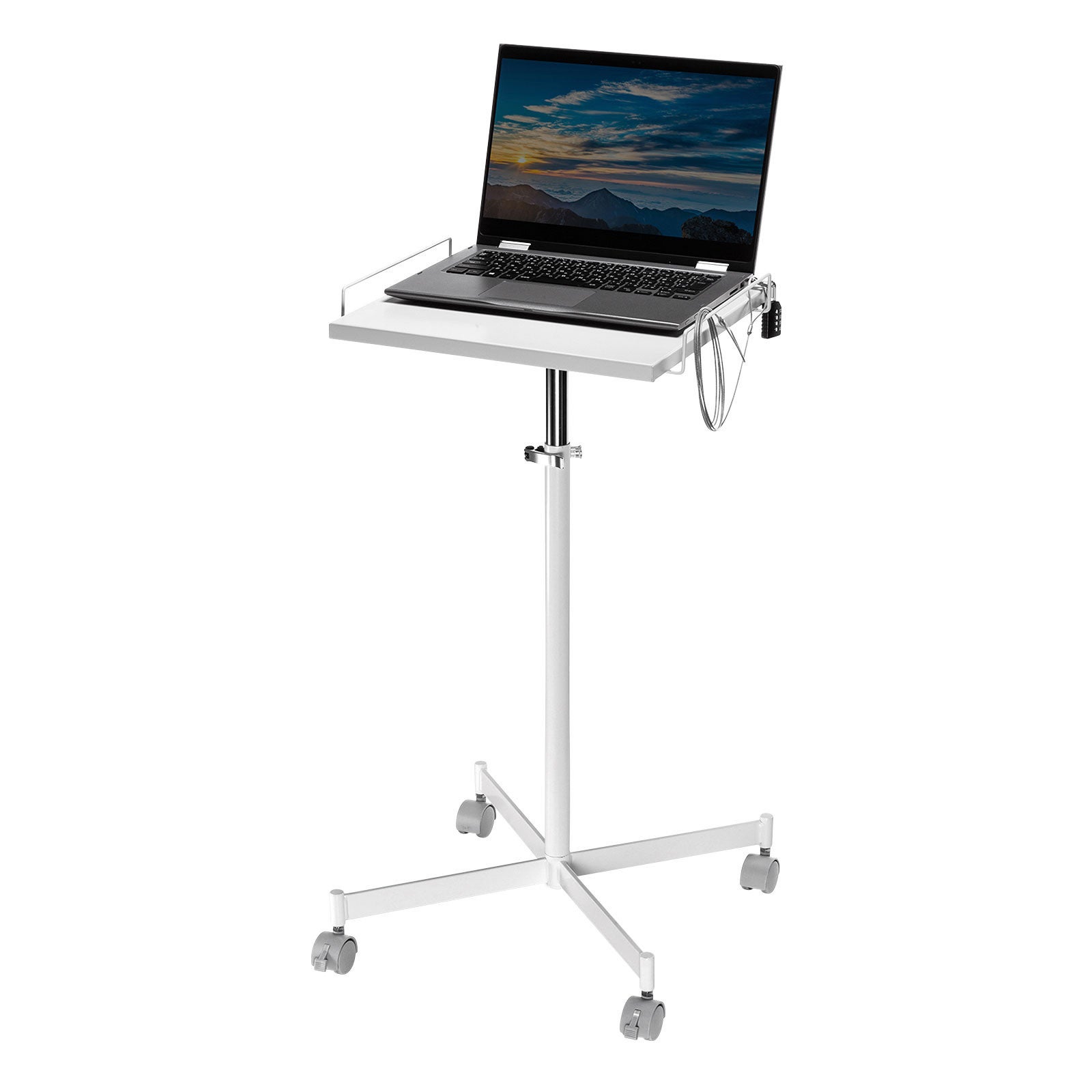 天板の両端には機器の落下を防ぐガードが付いています。機器の落下防止以外にもセキュリティワイヤーを取り付けることで設置しているノートパソコンを盗難から守ります。