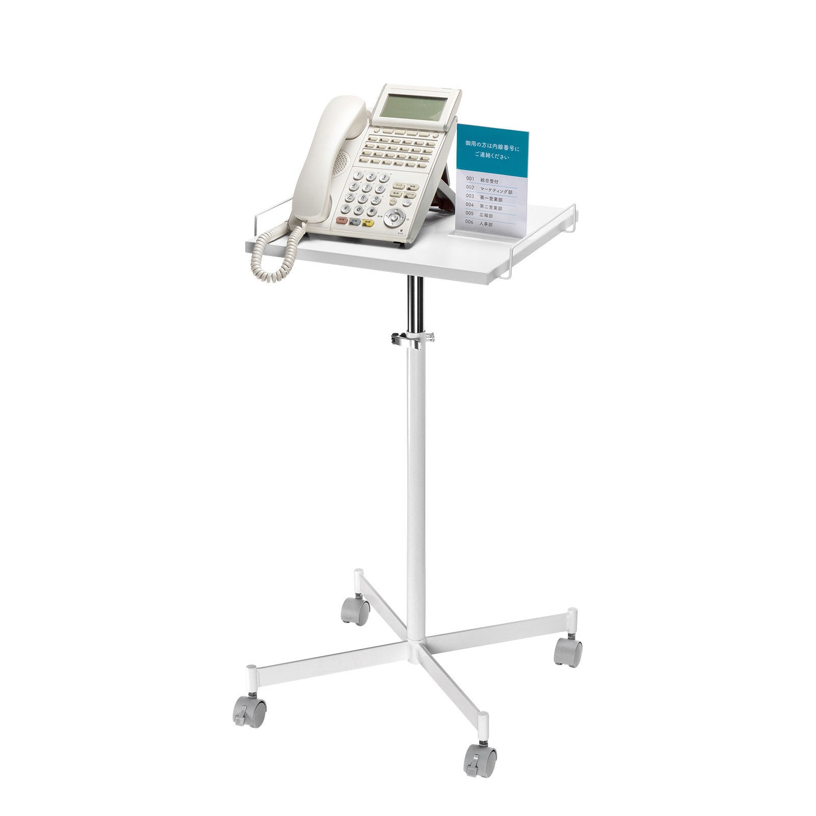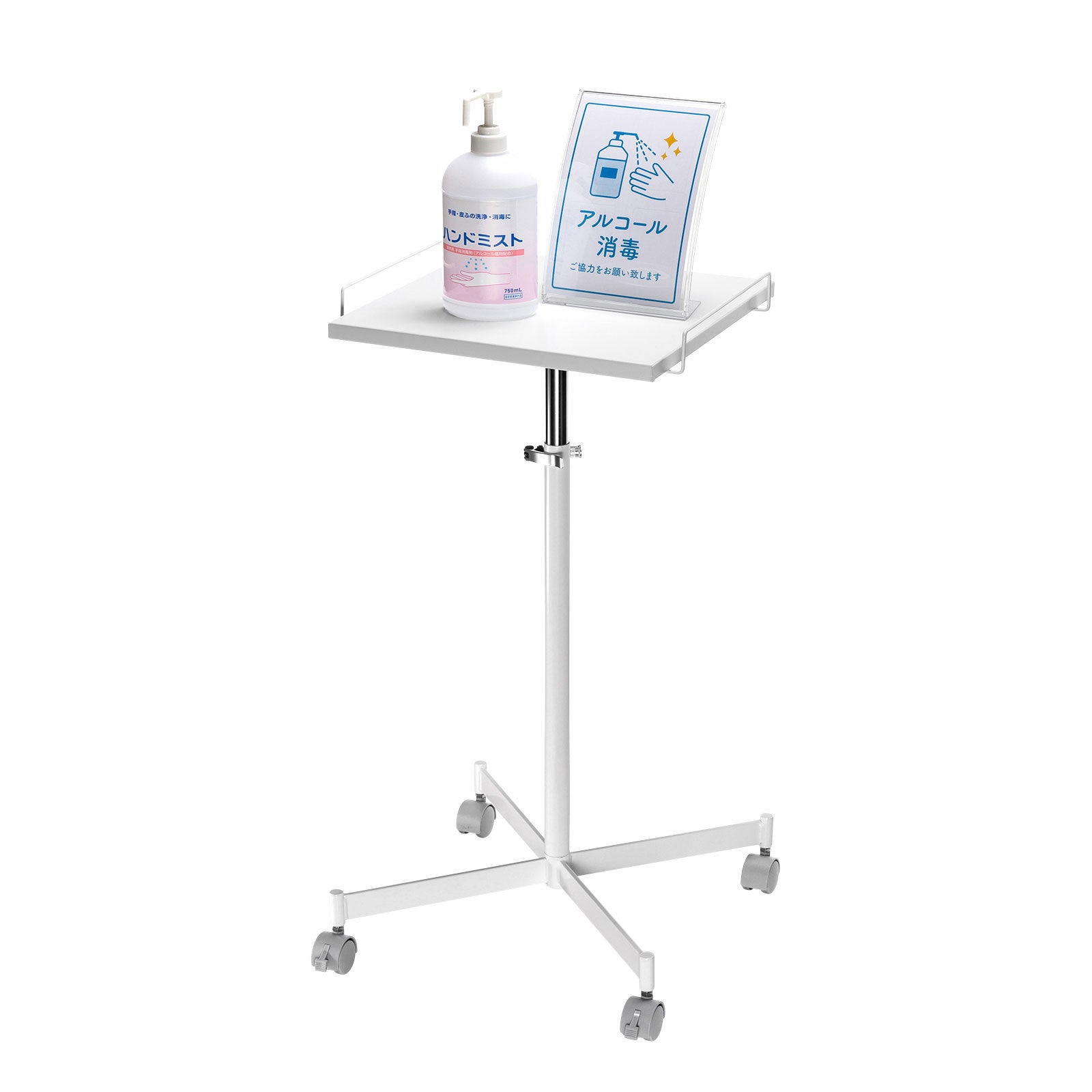 シンプルなデザインのため、受付に設置して新型コロナウイルス対策用の消毒液台や電話台として使用したり、ノートパソコンやプロジェクターなどの機器を設置する演台として使用したりと、様々な用途でお使いいただけます。