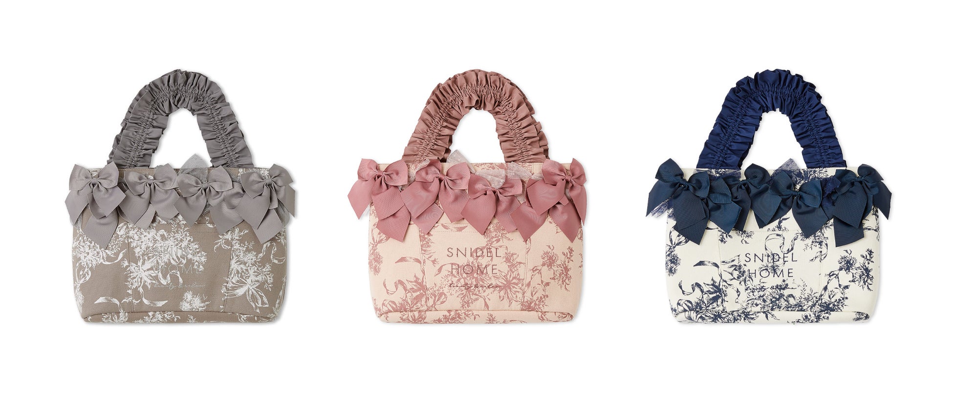 SNIDEL HOMEで人気のリボンバッグにポーチ同様、新色のトワル・ド・ジュイ柄が登場。