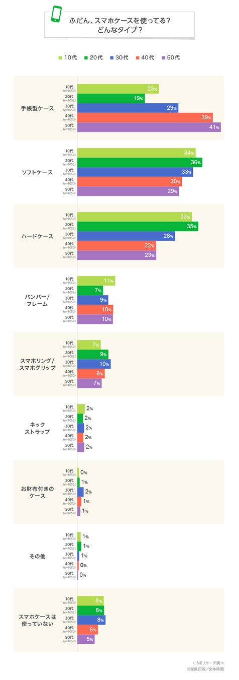 このたびLINEリサーチでは、日本全国の男女を対象に、ふだんスマホケースを使っている人の割合や、使っているケースのタイプなどについて調査しましたので、その結果をお知らせいたします。