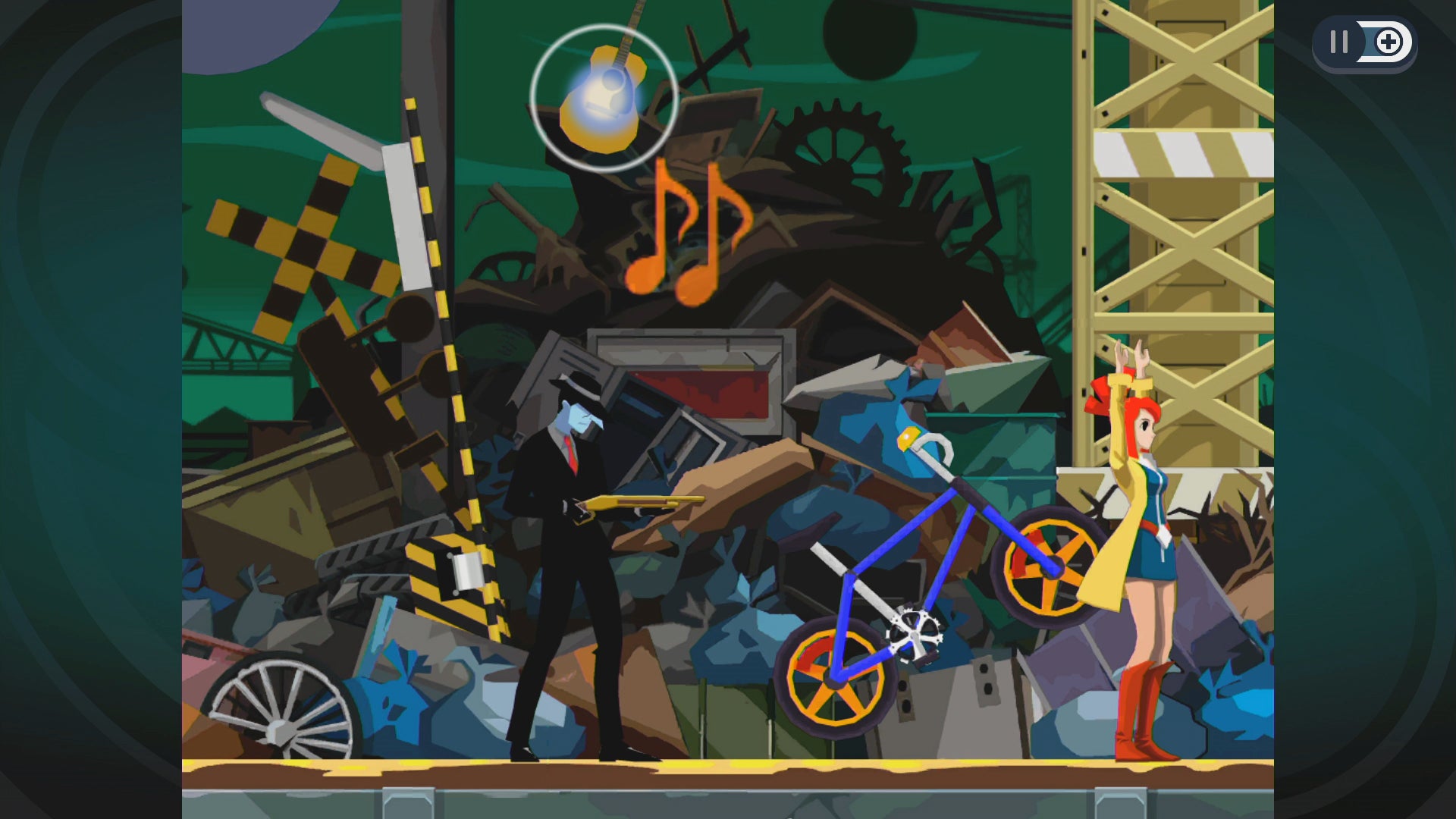 ジテンシャのベルを鳴らして、ヒロインの“リンネ”を狙う殺し屋の注意を引くなど、