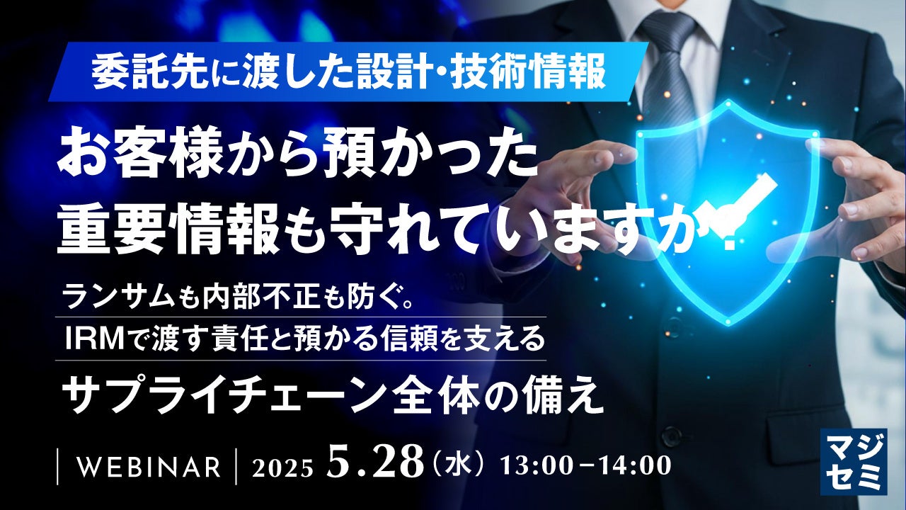 マジセミ株式会社は「委託先に渡した設計・技術情報、お客様から預かった重要情報も守れていますか?」というテーマのウェビナーを開催します。
