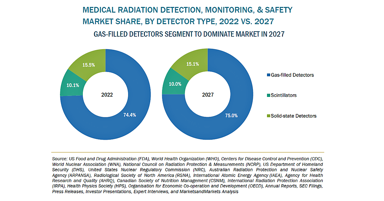 医療用放射線検出・監視・安全の市場規模は、2022年の10億米ドルからCAGR6.8%で成長し、2027年には14億米ドルに達すると予測されています。市場の成長は、癌の高い有病率、老年人口の増加、放射線診断手順の実行数の増加、放射線療法の採用の増加によってもたらされています。