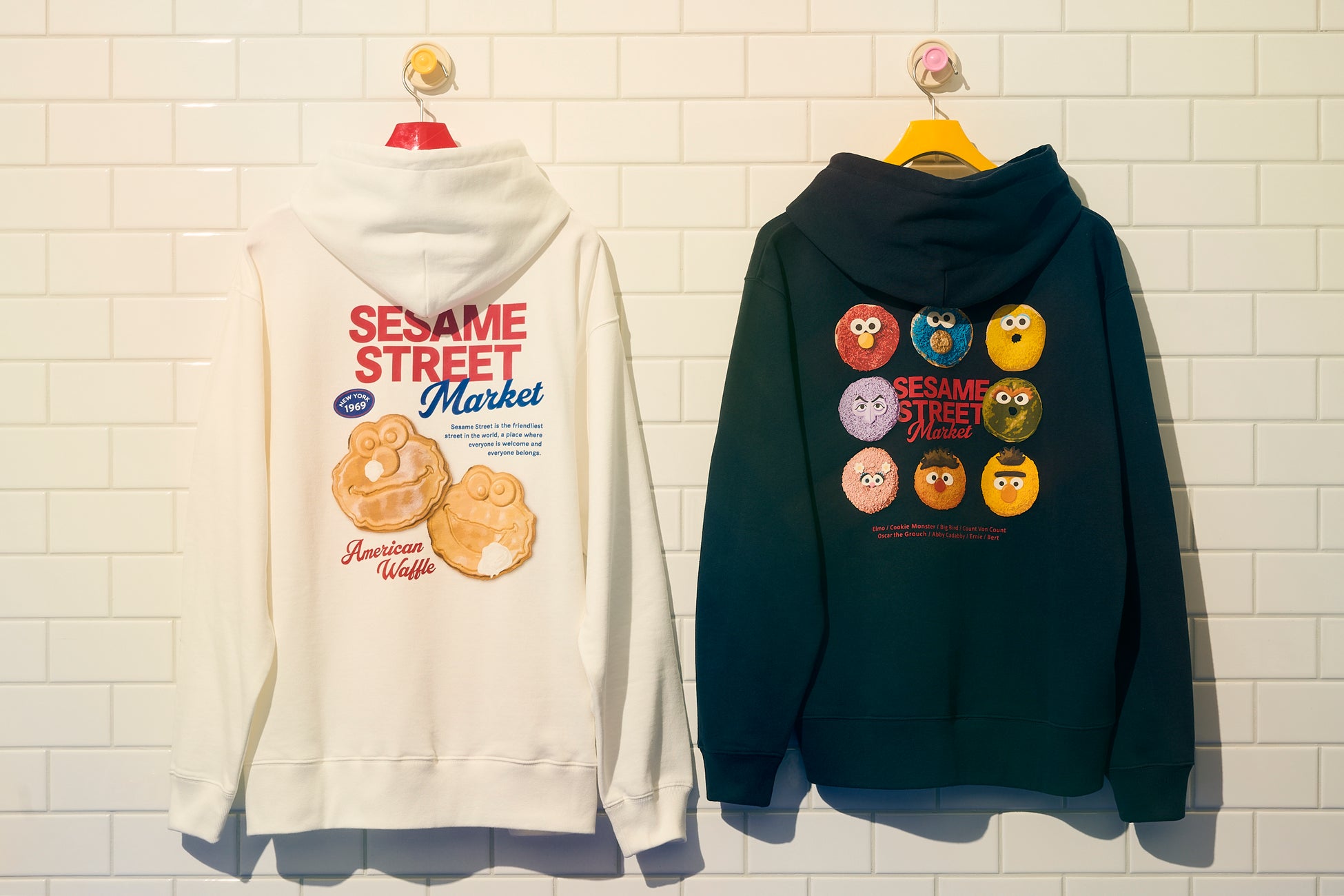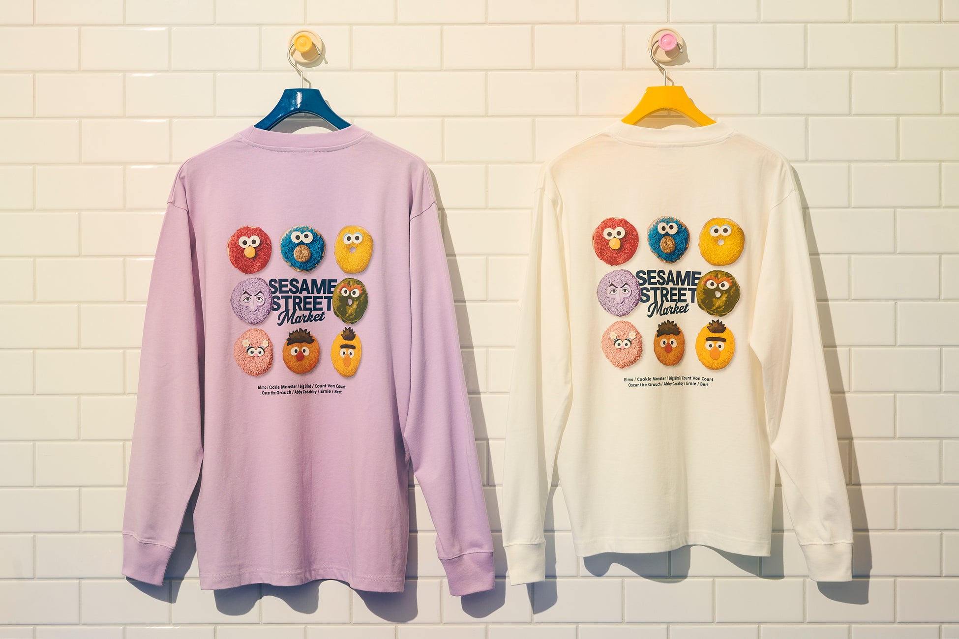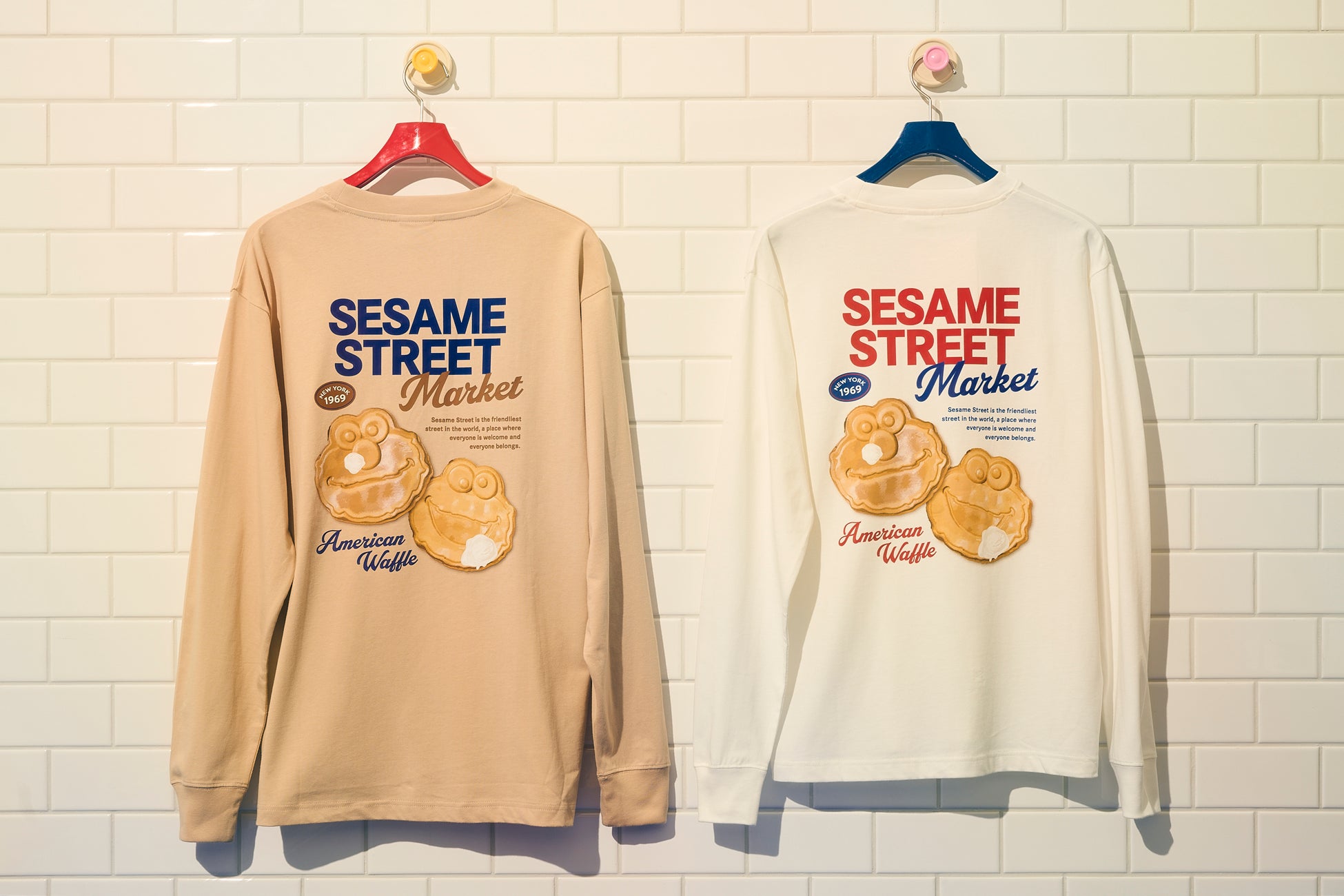 実際にセサミストリートマーケットのカフェで展開されているスイーツをモチーフにした、大好評シリーズの第2弾が登場です。第1弾のキャラクタードーナツに続き、今回はエルモとクッキーモンスターの形をしたアメリカンワッフルのデザインが新たにラインアップ。アメリカンカフェのポスターのような、レトロでファッショナブルなプリントをあしらったロンTやフーディーといったアパレルをはじめ、ポーチやチャームなどの小物類まで、幅広いアイテムを取り揃えました。スイーツの美味しさや見た目の楽しさをそのまま詰め込んだ、カラフルでインパクトのあるデザインが魅力です。