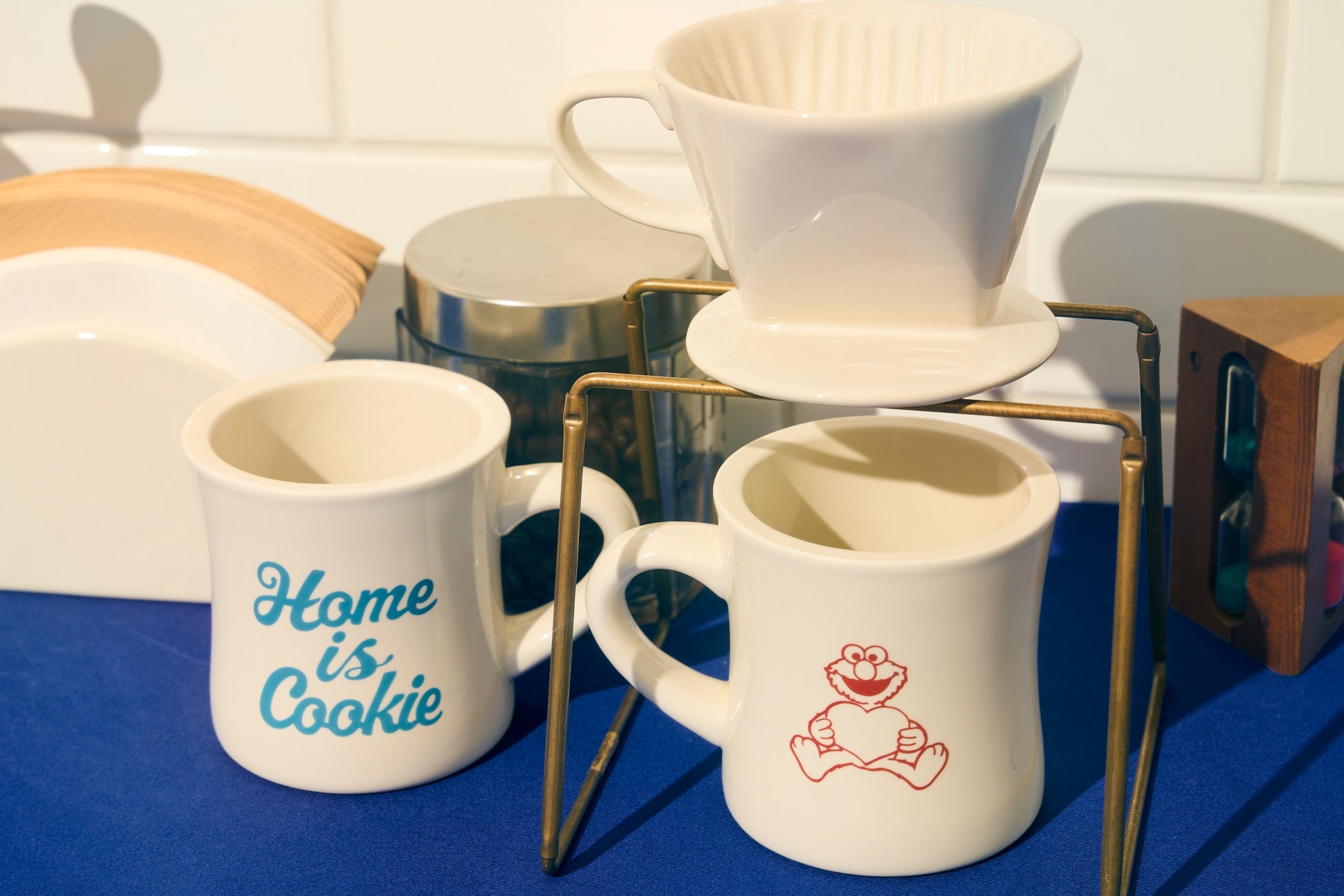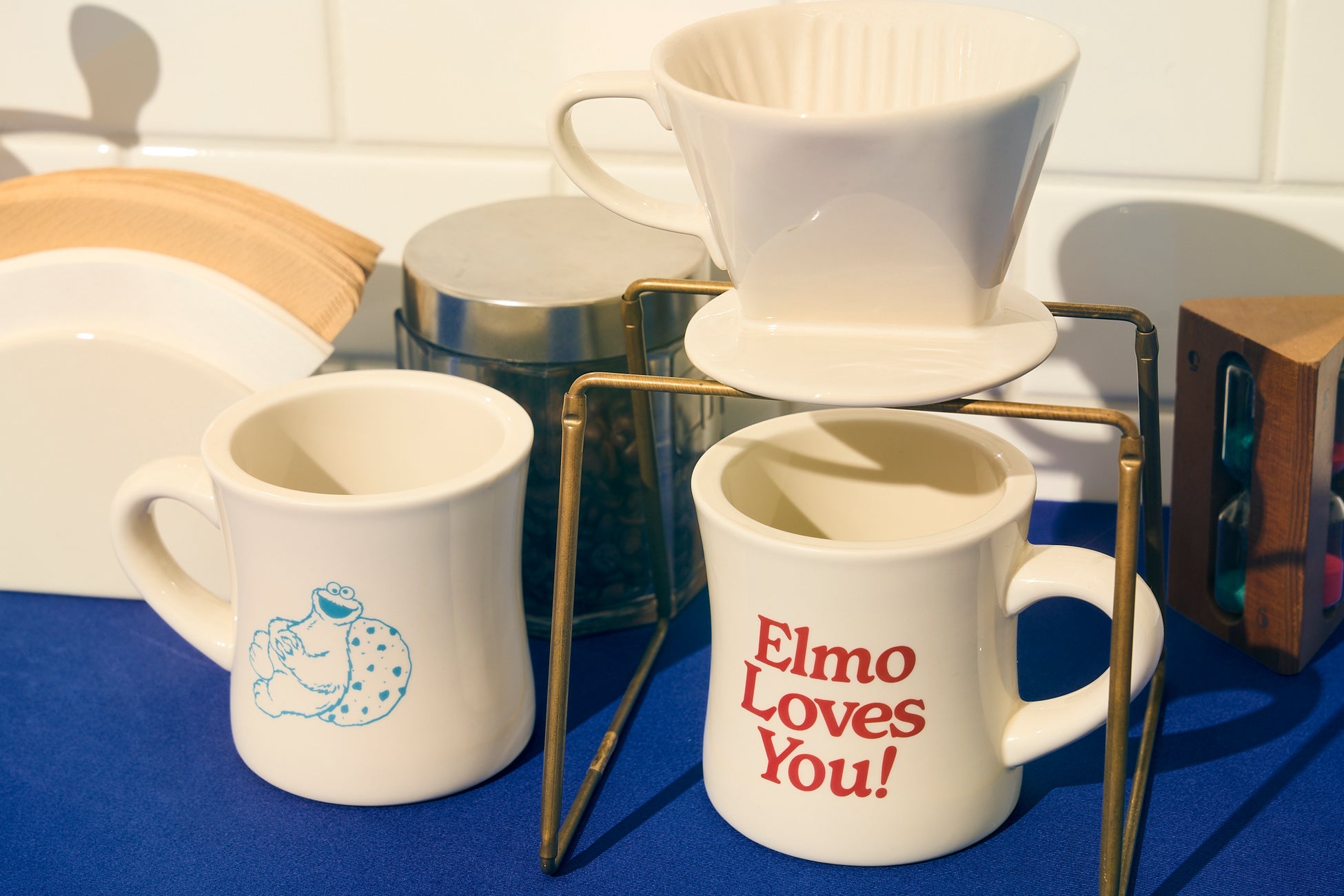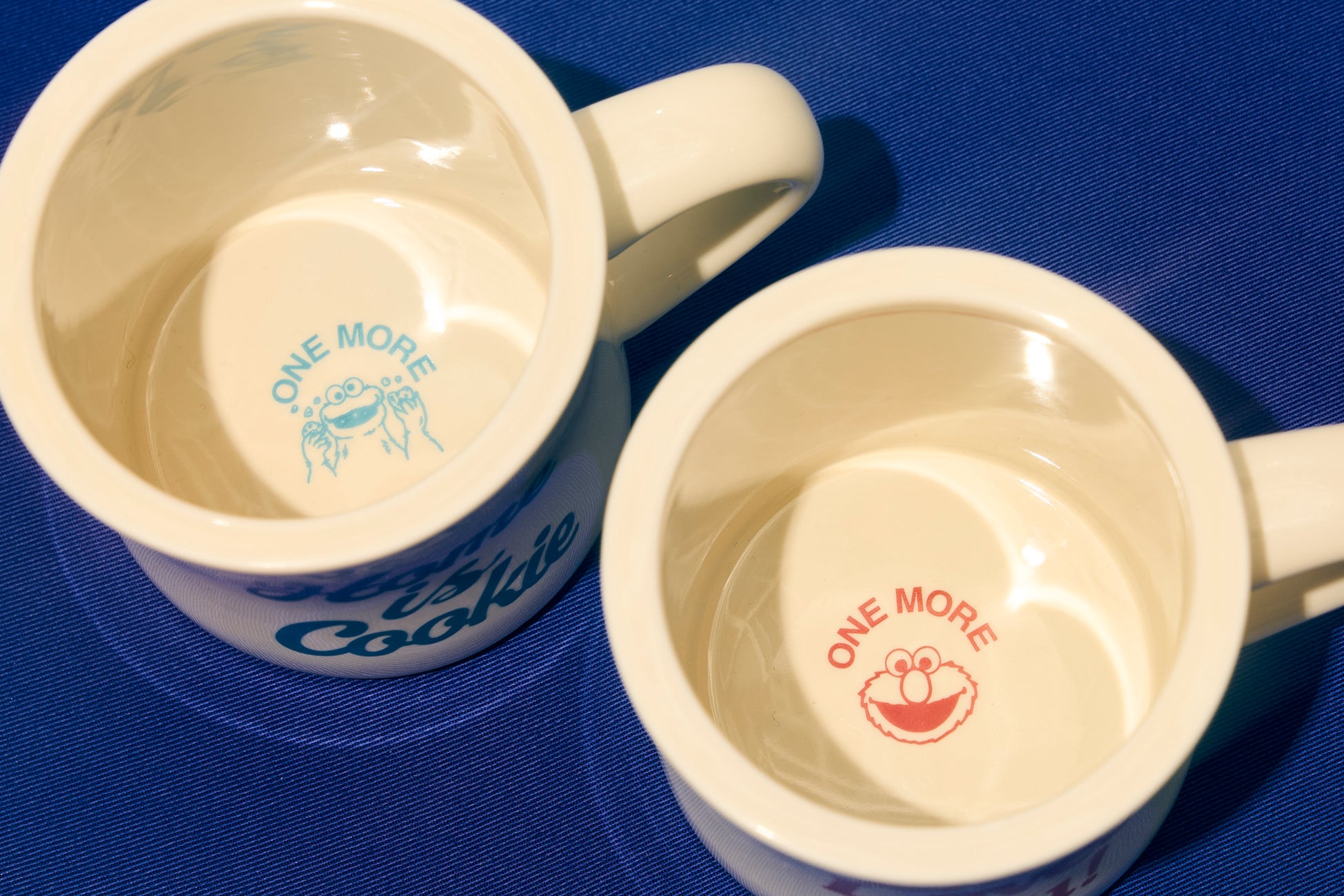 表面にはエルモとクッキーモンスターそれぞれの名言「Elmo Loves You!」「Home is Cookie」を、底面にはキャラクターのプリントを施した、遊び心たっぷりのデザイン。ご自宅のダイニングにはもちろん、ペン立てなどのインテリアとしても活躍します。