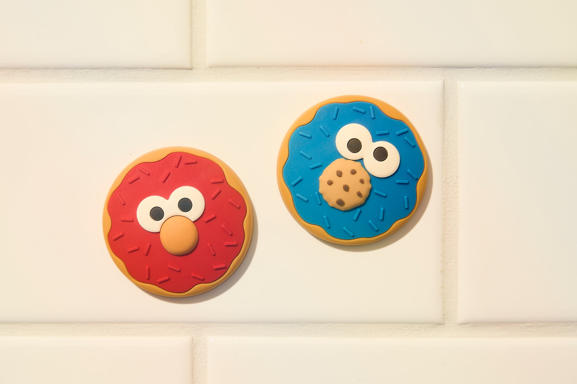 エルモとクッキーモンスターのキャラクタードーナツが、姿そのままにラバーマグネットになって登場。スプリンクルの粒感まで丁寧に再現されたぷっくりとした立体感が魅力で、冷蔵庫や玄関まわりに貼るだけでお部屋が明るく華やぎます。ちょっとしたメモを留めるのはもちろん、インテリア感覚で楽しめるアイテムです。