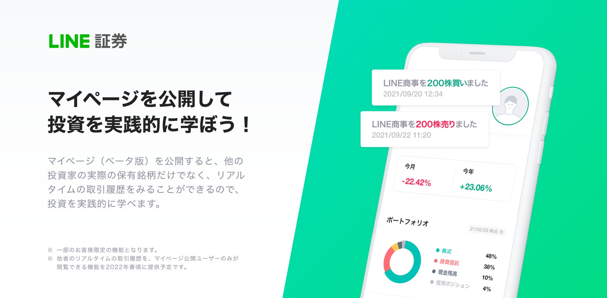 LINE証券、運用成績やポートフォリオ比率などを公開できる「マイページ公開機能」のβ版を提供開始