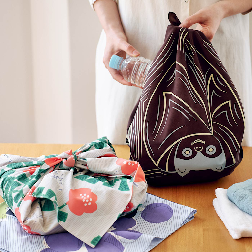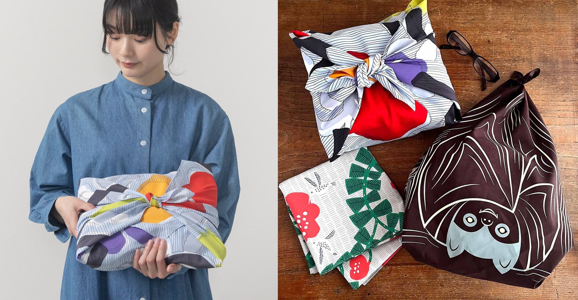 進化する新しい伝統に注目です。靴下や下着など、こまごまとしたものを仕分けして包んだり、思いがけない買い物用のサブバッグなどにも使えて便利な日本のサステナブル風呂敷です。70cm角という絶妙サイズがかなり便利で、トレッキングに持っていくお弁当やおやつを包んで、食べるときには下に敷くなんていう使い方もできるし、手土産を包んでもよいし、プレゼントを包んでそのまま贈ってもナイスです。撥水加工なので、ぬれたタオルも包んで持ち運びできます。夏の水辺の遊びや、温泉旅行・銭湯にもぴったりです。急な雨のも持ち物をカバーしたり、折りたたみ傘も包んだり。荷物が増えれば出動。ないときはたたんでフラットにしまって携帯でき、旅の相棒にも本当に便利です。京都の風呂敷専門店「むす美」と、アーティスト(アートユニット)鈴木マサル・コチャエ・kata kataがコラボしたデザインです。