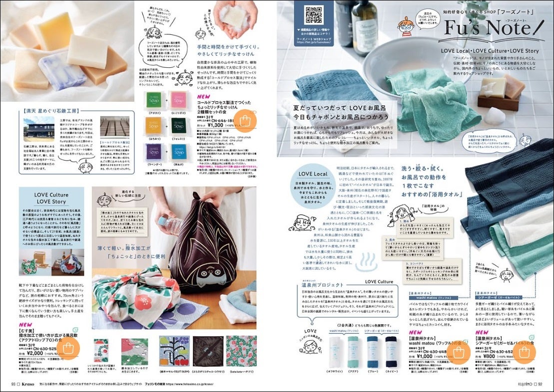 フェリシモが展開する「Fu’sNote[フーズノート]」から2024年夏を楽しむちょっといいもの、知的好奇心をくすぐるものたちが登場、『暮らしはエンタメ! Kraso[クラソ]Premium Summer』に新アイテムを掲載し、7月5日よりウェブ販売を行っています。新作は、「温泉州タオル」や「コールドプロセスせっけん」、「撥水加工をほどこした風呂敷」。アイテムの詳細はデジタルカタログでチェックできます。