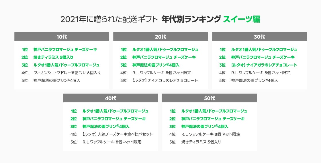 LINEギフトで2021年に最も贈られた配送ギフトは、男女ともに大人気スイーツショップ、ルタオの「フロマージュ」という結果に!