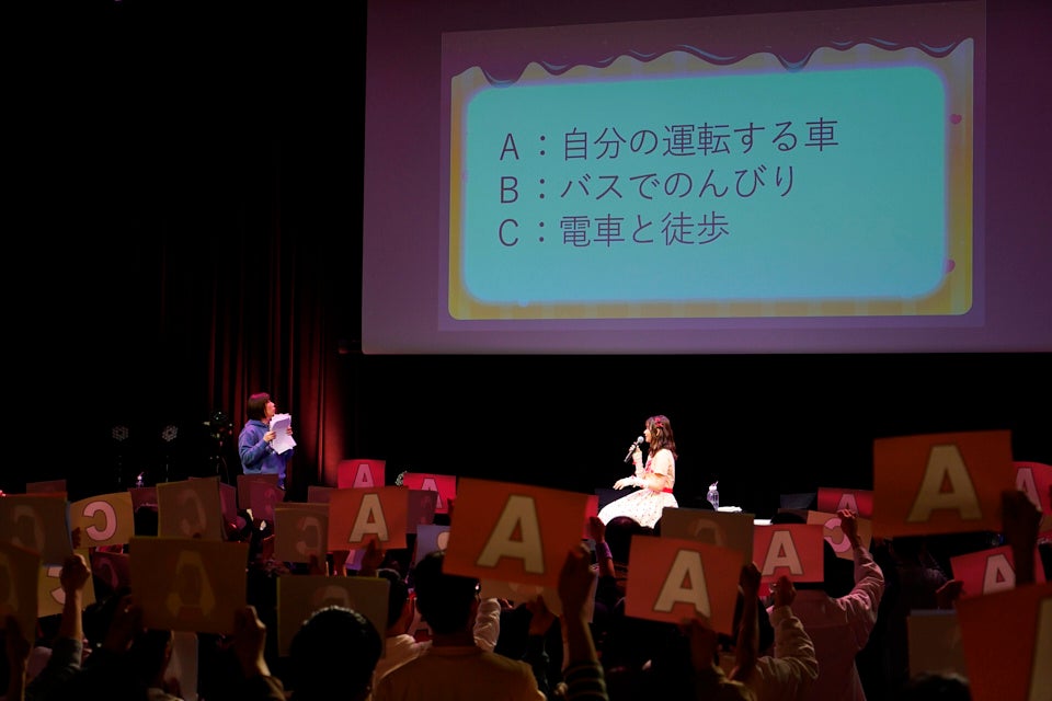 まず最初は、つーりすとからのちょこっとした質問に答えていく「すわわのチョコチョコトーク」から。「みかんの薄皮は剥く派ですか?」(剥かない派)、 「スキンケアって何を使ってる?」(日によって。時間がある時に気分でやる)、、「今年絶対にやりたいことは?」(旅行に行きたい。食べ物は福岡や名古屋が好き)、好きなラーメンは?(博多のとんこつラーメン)などなど、すわわらしく簡潔に答えていたが、随所に見せる彼女らしい受け答えに、会場も笑顔になる。